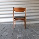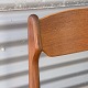 Beskrivelse: Sæt med seks stole i teaktræ med sorte skai sæder
