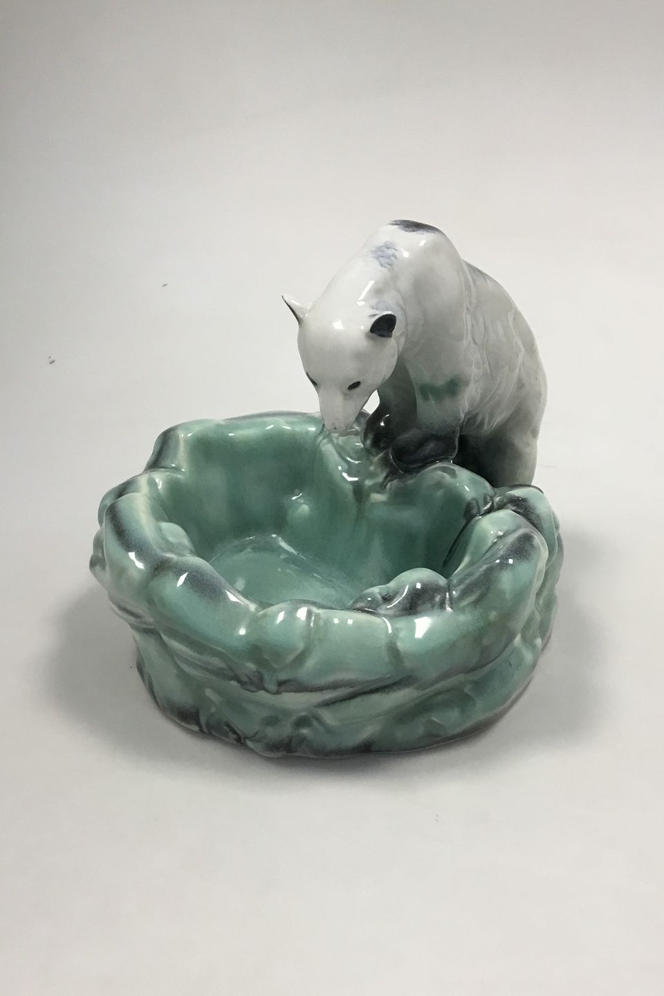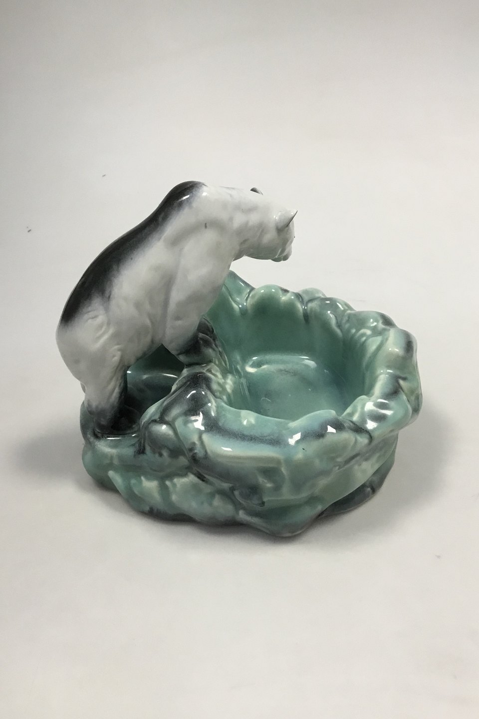 Beskrivelse: Ditmar Urbach, Tjekkoslovakiet, Isbjørn ved våge i isen. Fra 1. halvdel af 1900-tallet. Måler ca. 22 cm