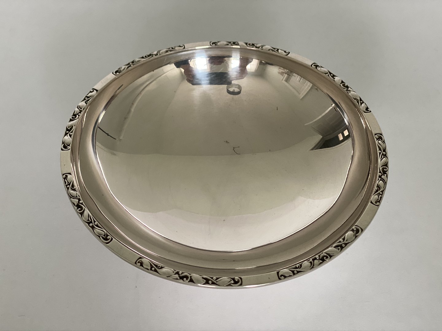 Beskrivelse: Evald Nielsen, sølv skål på fod. Udført 1940. Vægt 218 Gr. Diameter 15,5 cm.