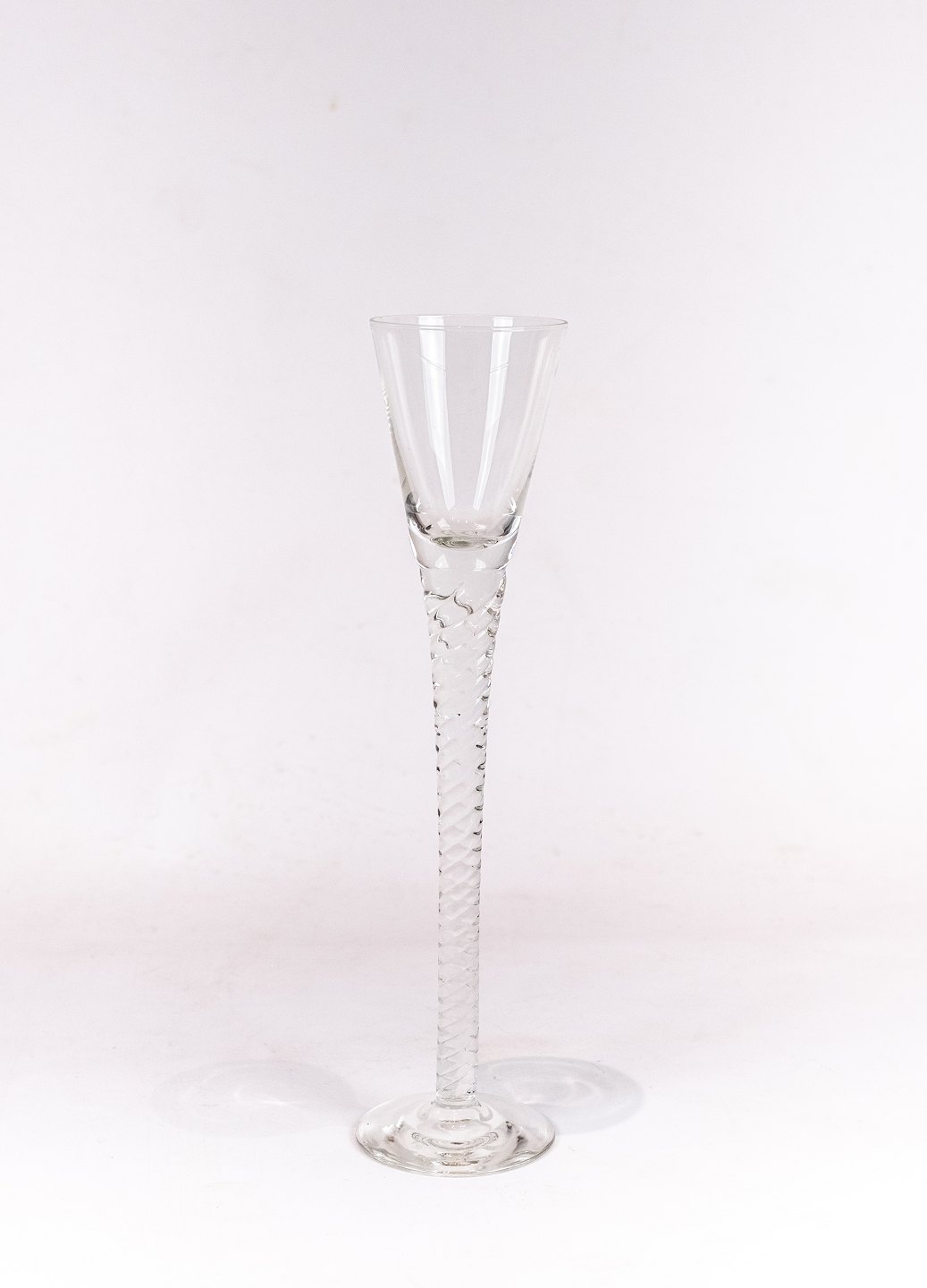 Description: Tall schnapps glass with twisted stem, in great vintage condition. Ask for number in stock.