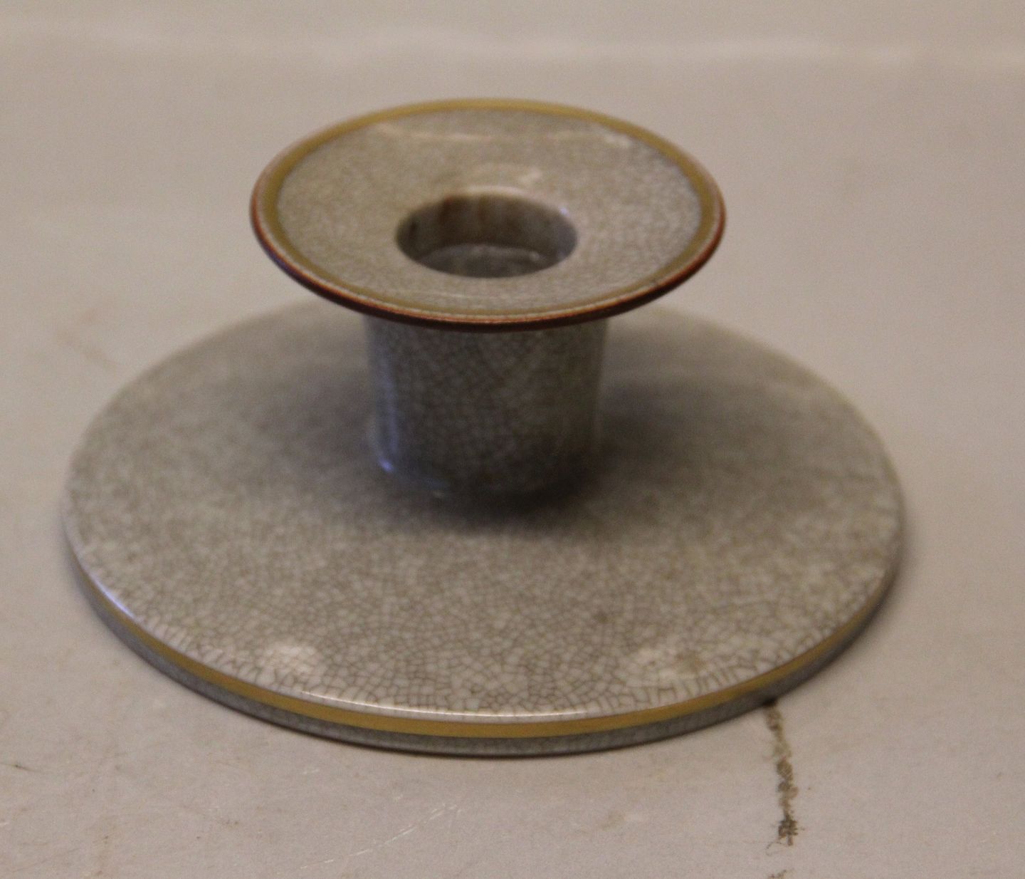 Description: 3335 RC Candlestick grey with gold and orange line 6 x 12 cm Royal Copenhagen Crackleware Craquelé, (Crackelure)