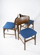 Set of three dining room chairs of dark wood and blue fabric of danish design from the 1960s.