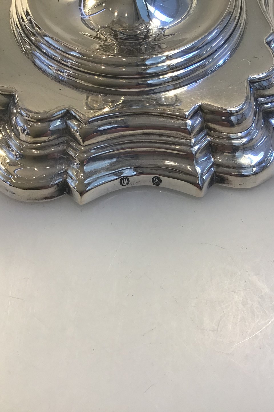 Beskrivelse: Danske Sølv Lysestager (1948)) Måler H 10.5 cm 11 cm x 11 cm Vægt 591.4 gr