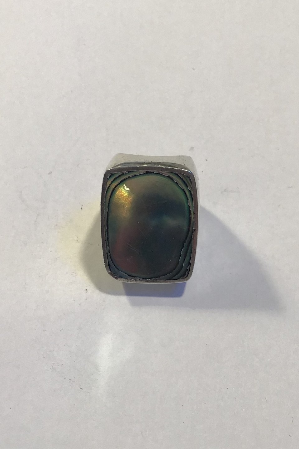 Beskrivelse: Palle Bisgaard Sterling Sølv Ring No 8 Abelone Perlemor Str 54 Måler 2.8 cm x 2.1 cm Vægt 23.5 gr