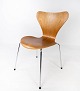 Beskrivelse: Sæt af 12 Syver stole, model 3107, i teak designet af Arne Jacobsen og fremstillet af Fritz Hansen i 1996. Stolene er i flot brugt stand.