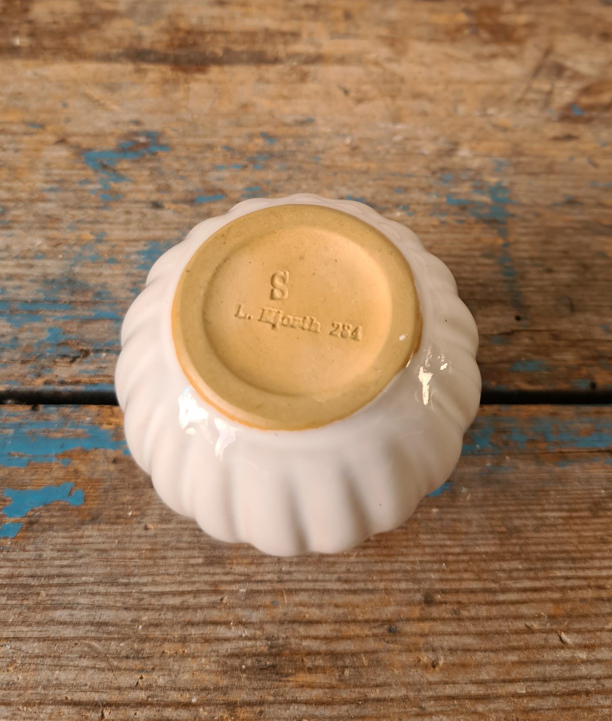 Beskrivelse: Hjorth cremefarvet riflet miniature vase