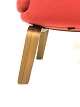Lænestol med ben af valnød og polstret med rødt stof af dansk design for Normann Copenhagen.