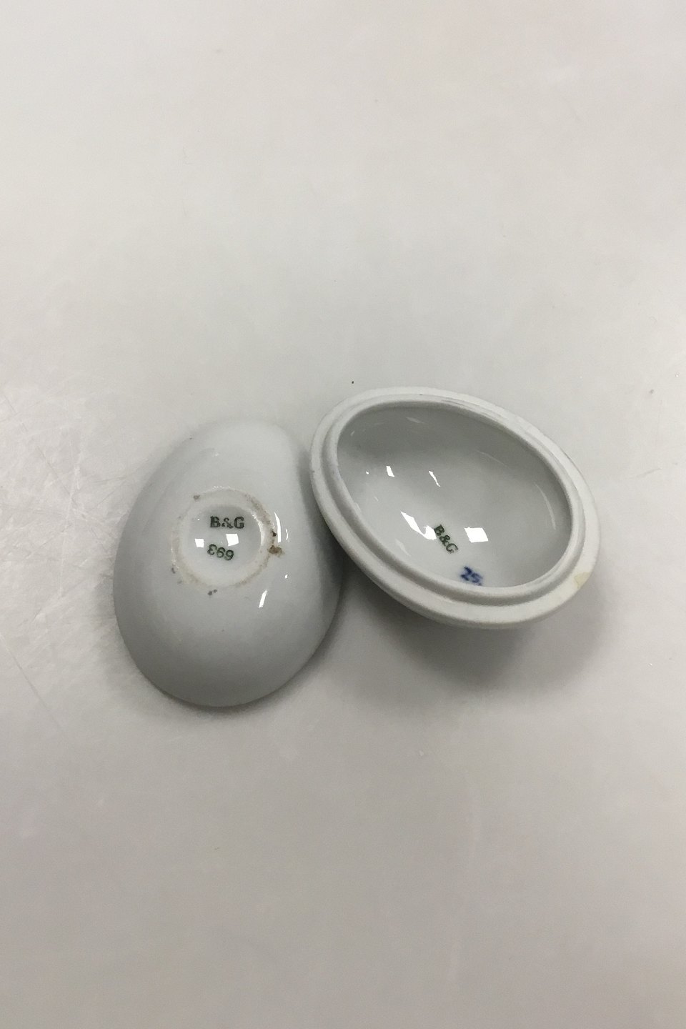 Beskrivelse: Bing og Grøndahl Blåmalet / Musselmalet Lille ægformet æske No 693. Måler 6,2 cm ( 2 7/16 in. )