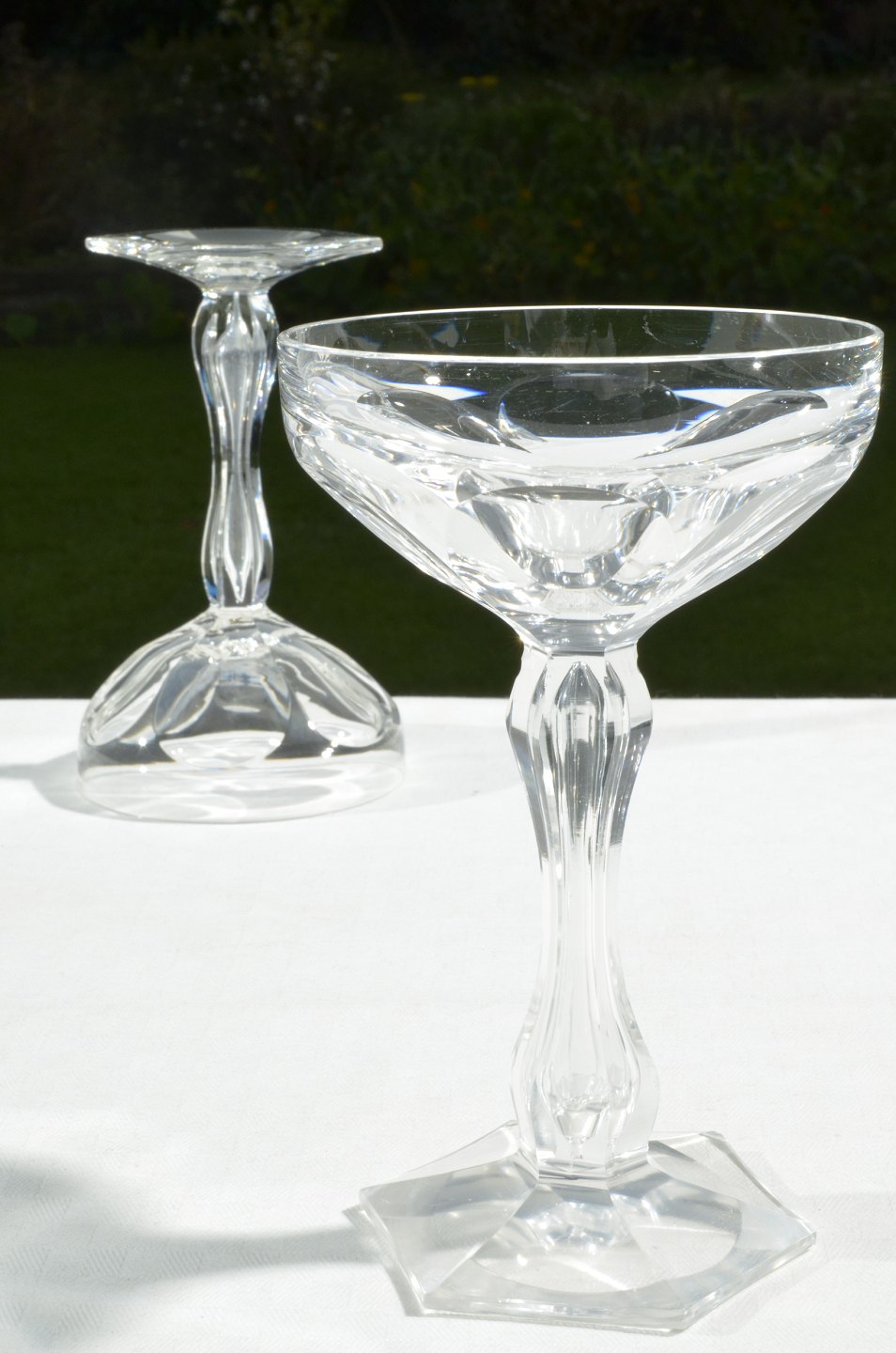 Description: Lalaing Champagne glass, height 16 cm. Diameter 9.7 cm. 6 5/16 inches. 3 7/8 inches. Fine condition.