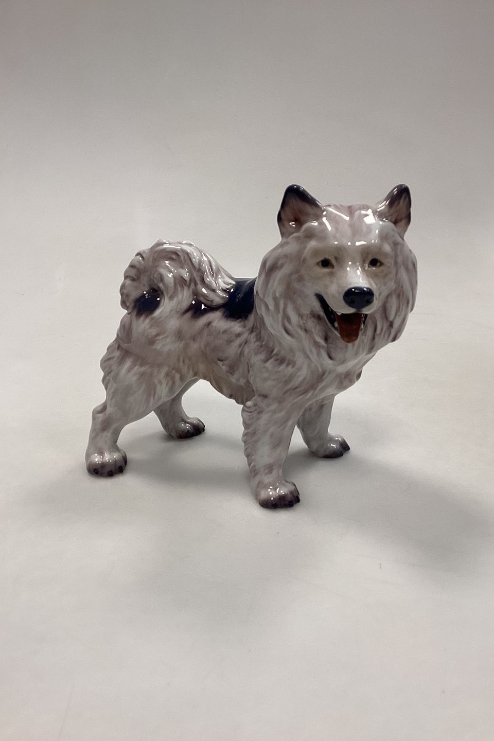 Description: Dahl Jensen Figurine Greenlandic Dog / Samoyed Dog No. 1082. Measures 16.5 x 18 cm (6 1/2 x 7 3/32 in).