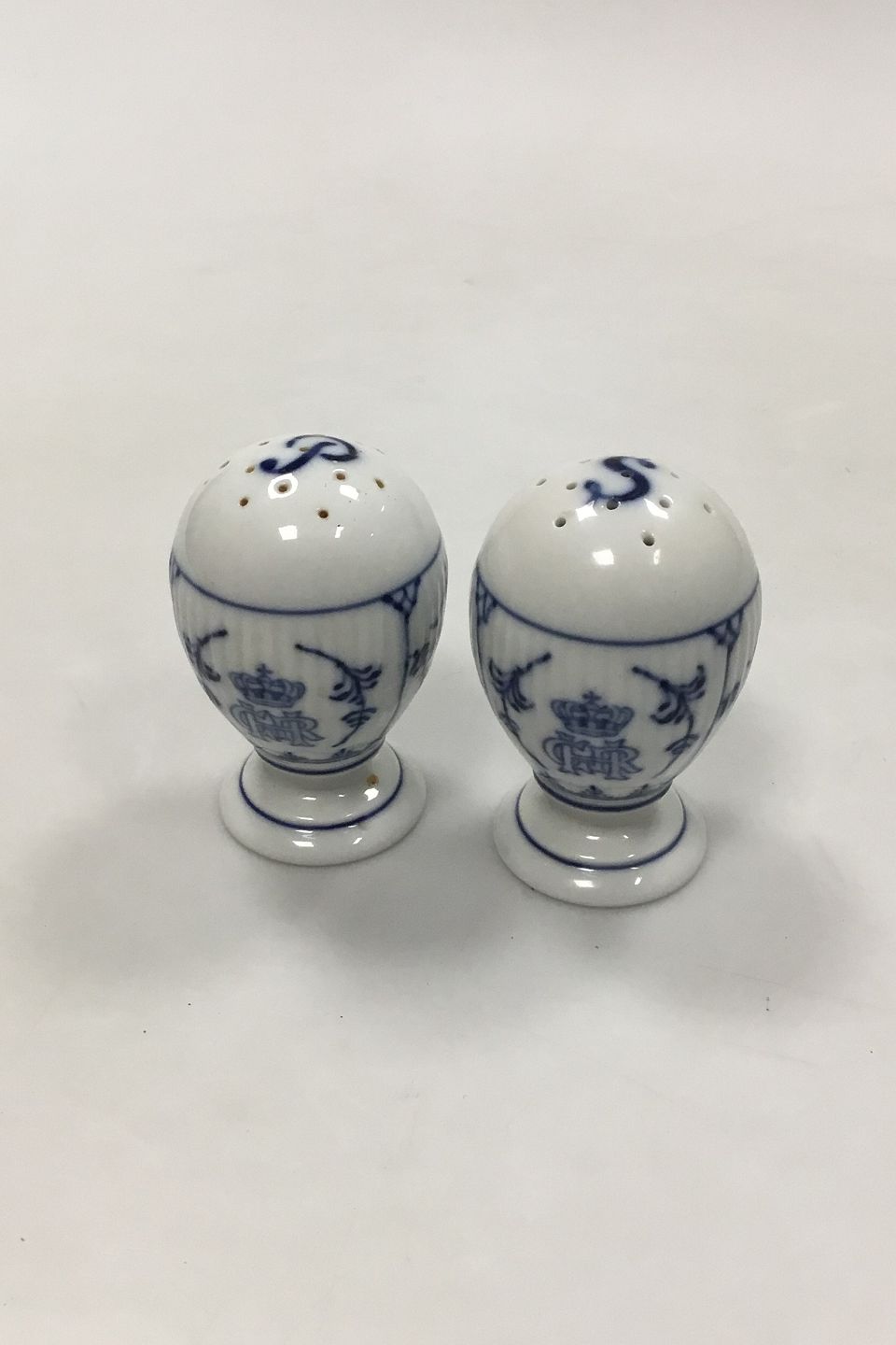 Royal Copenhagen Musselmalet Riflet Salt og -pebersæt No. 189/2009 med logo