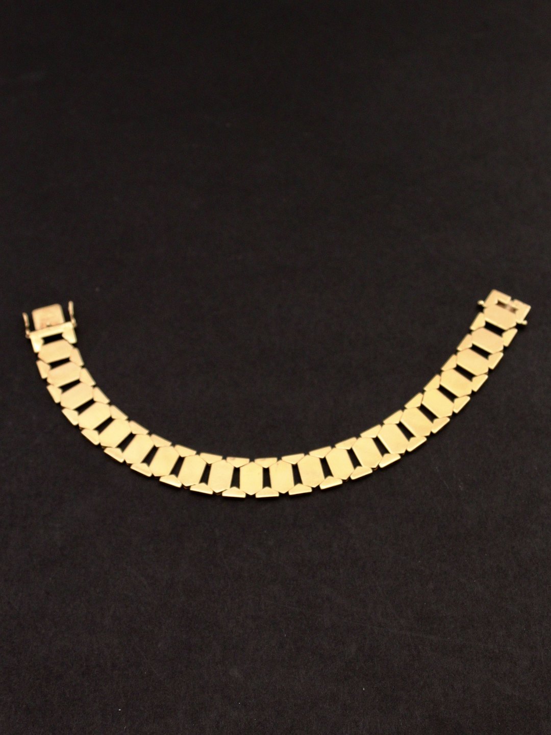 Description: 14 carat gold bracelet 18.5 cm. B. 1.2 cm. 22.7 gr. Stamped gold timber 585 item no. 488394