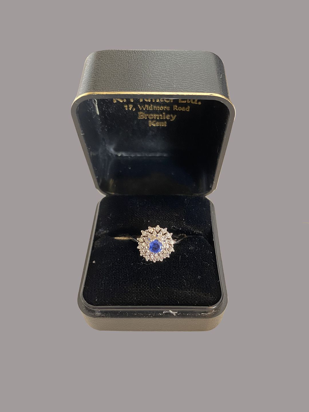 Description: Ring, white gold, sapphire, small diamonds