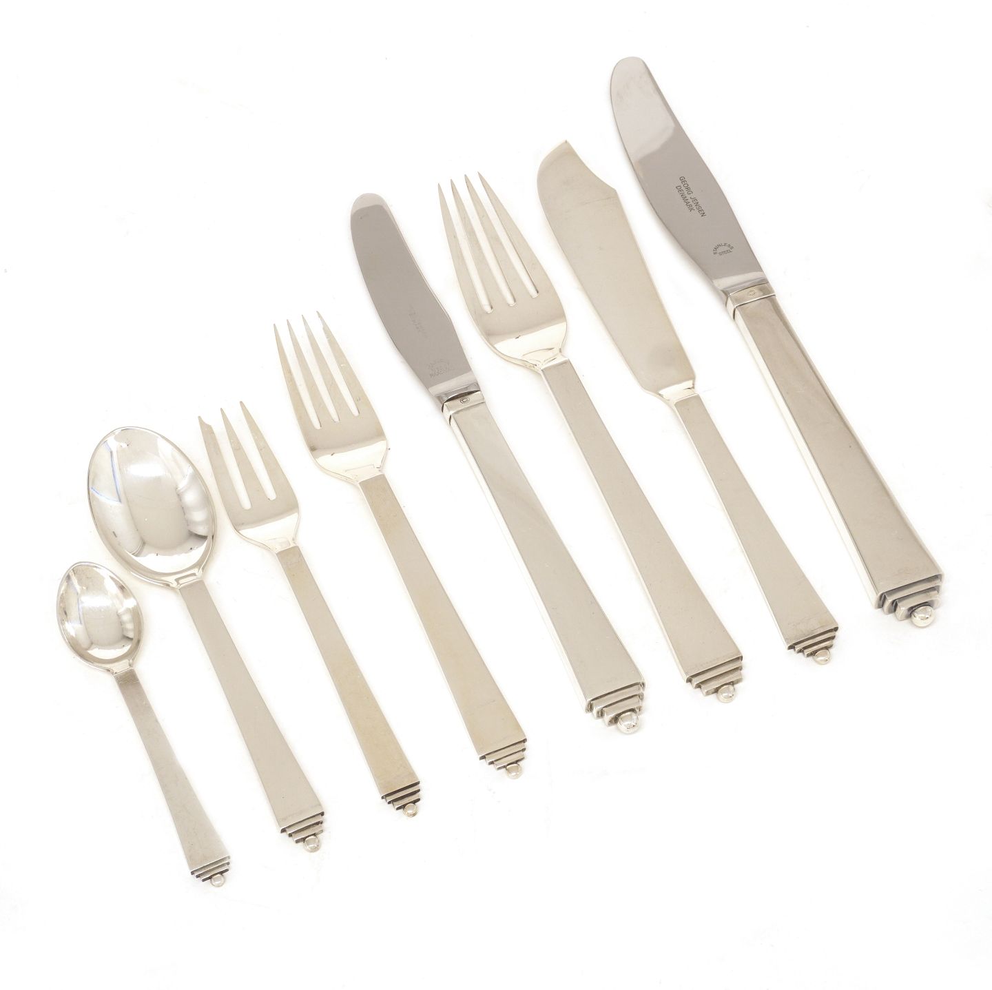 Pyramide sølvbestik. Harald Nielsen for Georg Jensen. Pyramide sterling sølvbestik til 12 personer. 101 dele i alt
