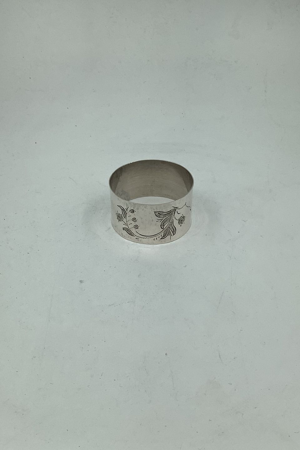 Beskrivelse: Dansk Sølv Servietring med Blomster motiv