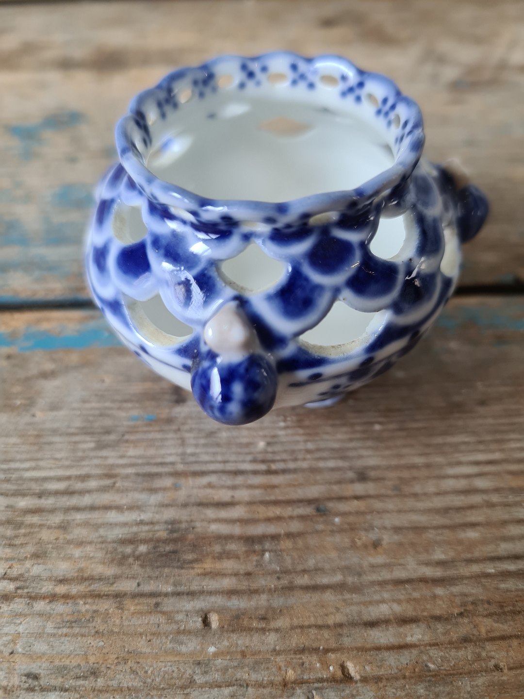 Royal Copenhagen Blue Fluted full lace rare small bouquet holder - vase no. 1045 - 1898-1923