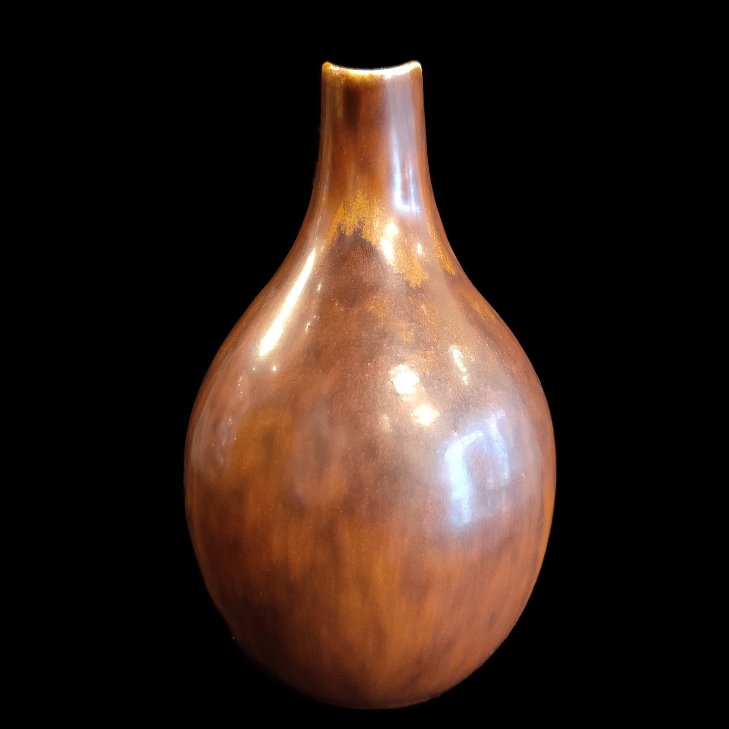 A stoneware pitcher decorated in a brown glaze #64. H. 18,5 cm. Stamped "64 Saxbo Denmark I".