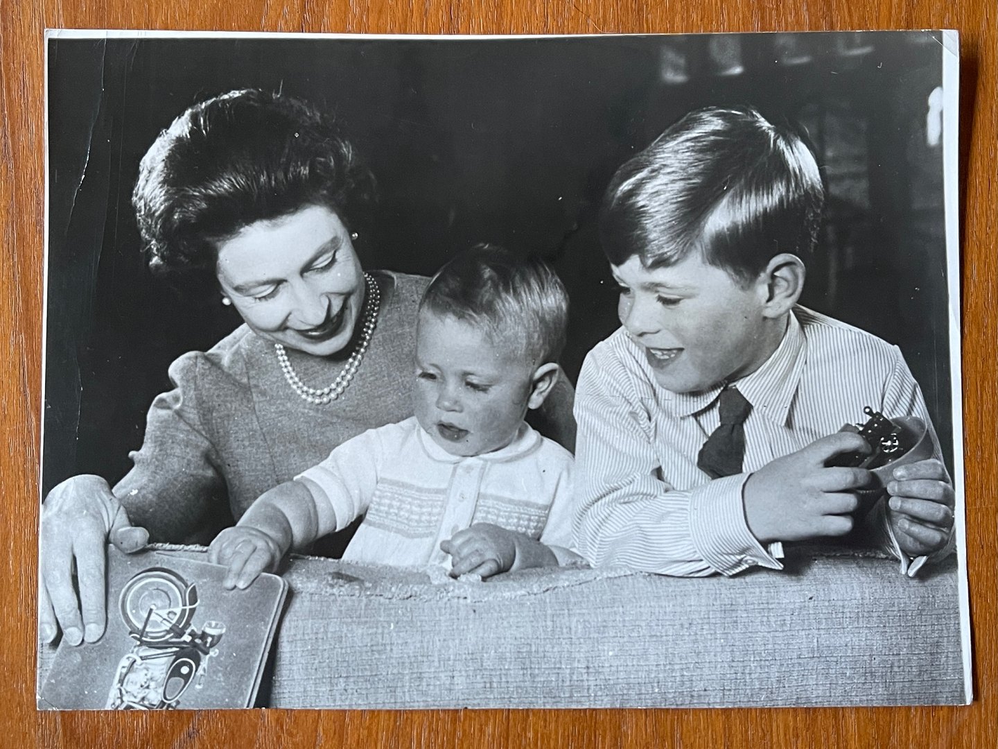 Photographer Lisa Sheridan - born 1894, died 1966 (Studio Lisa): Black and white photo of Queen Elizabeth II of England with her sons Prince Andrew and Prince Edward in 1965.