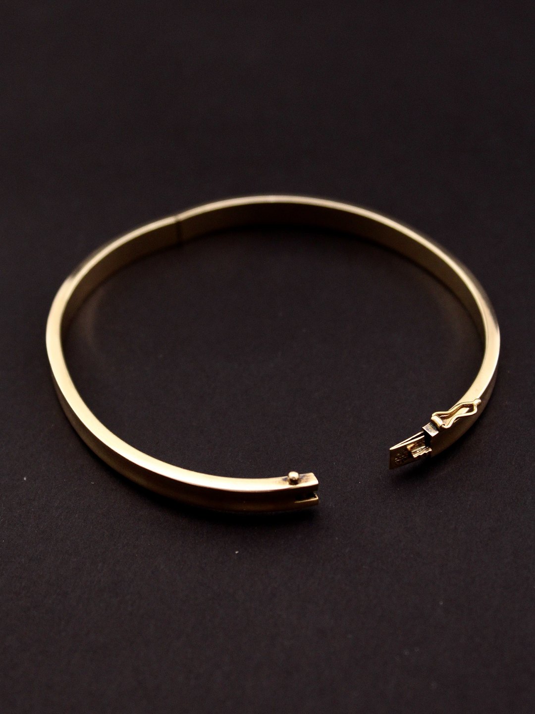 Description: 8 karat gold bangle 6.3 x5.5 cm. W. 0.55 cm. from goldsmith Knud Hejl Gjerlev item no. 517263