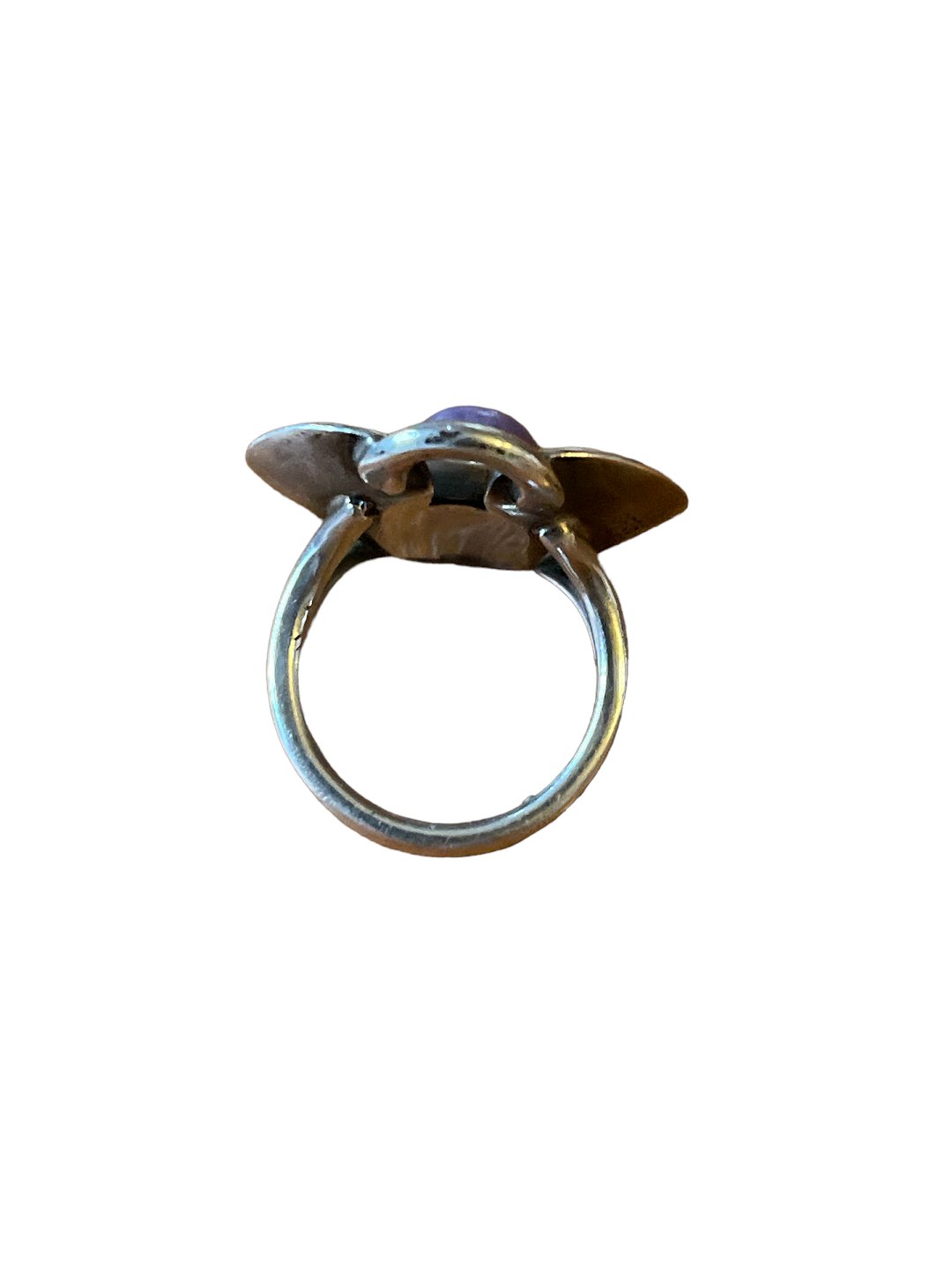 Stor, modernistisk ring i sterlingsølv med ametyst, størrelse 52,50, 1960'erne - 1970'erne, stemplet DGH for Dansk Guldsmede-Håndværk