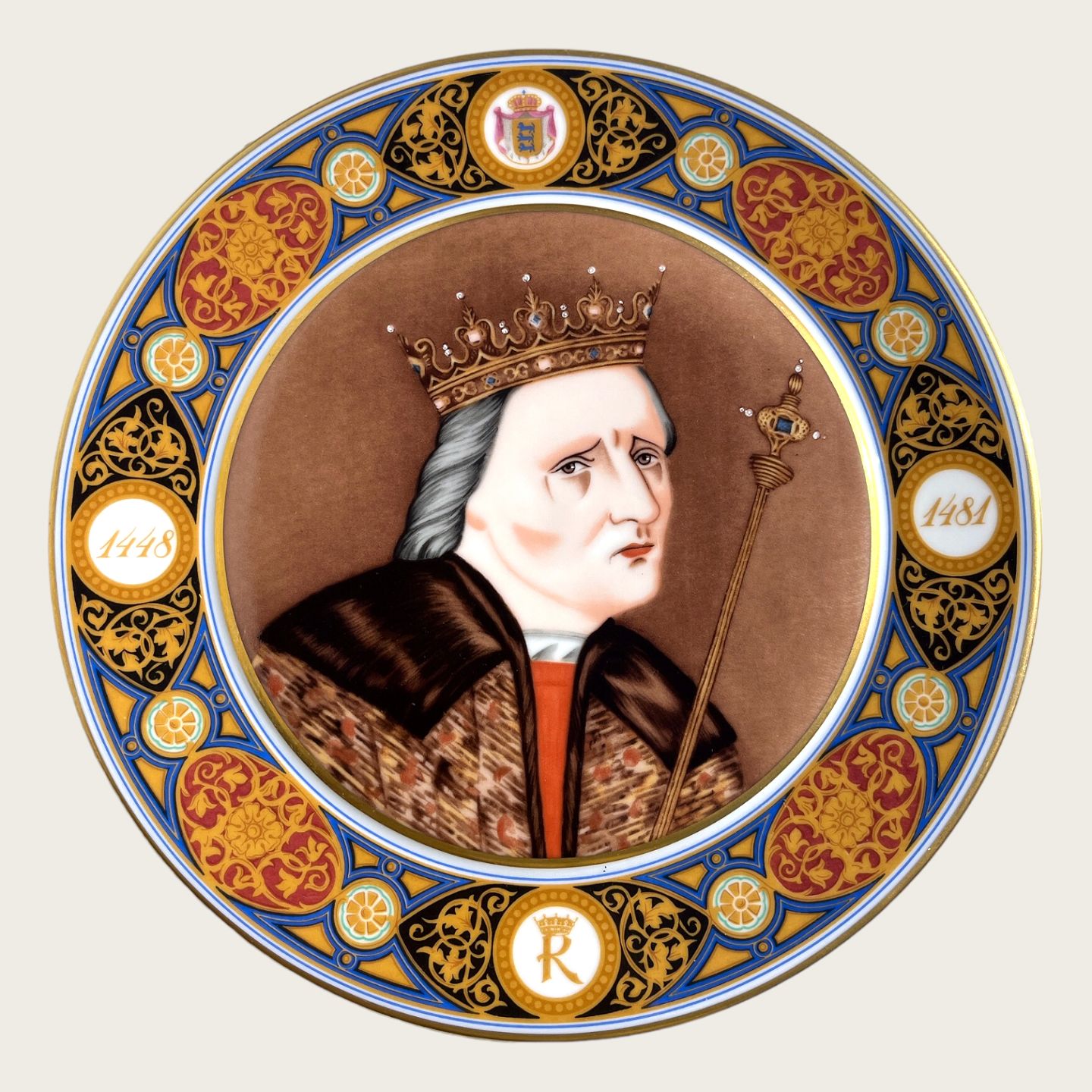 Beskrivelse: Bing & Grøndahl, Kongesamlingen, Konge platte, Konge Christian I, 23cm i diameter, Udgivet 1984, Design Ivan Falkenberg *Perfekt stand*