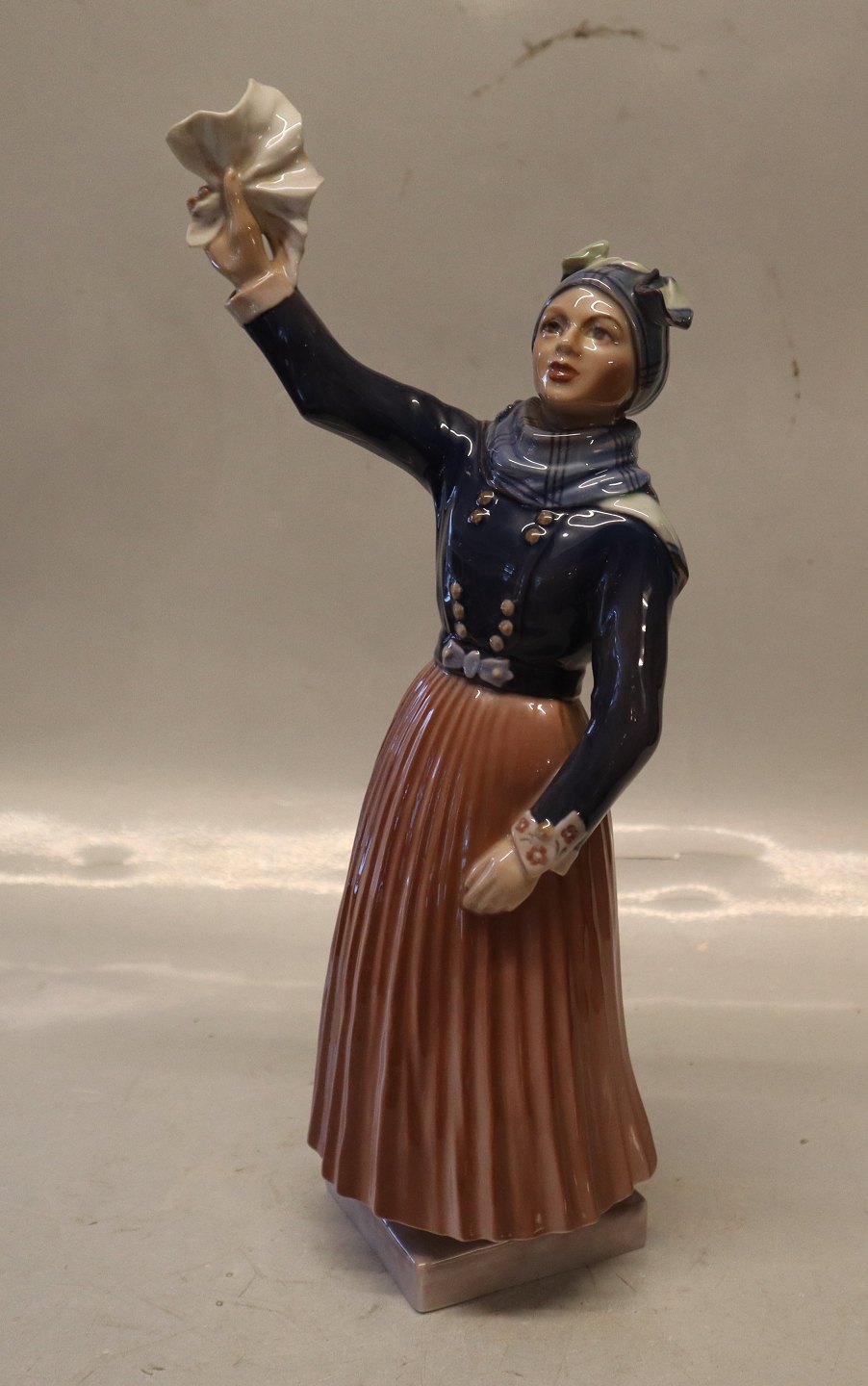 Dahl Jensen Marked with the Royal Crown and DJ Copenhagen 1325 Fanoe girl waving (DJ) 32 cm and mint condition National dress Fanø