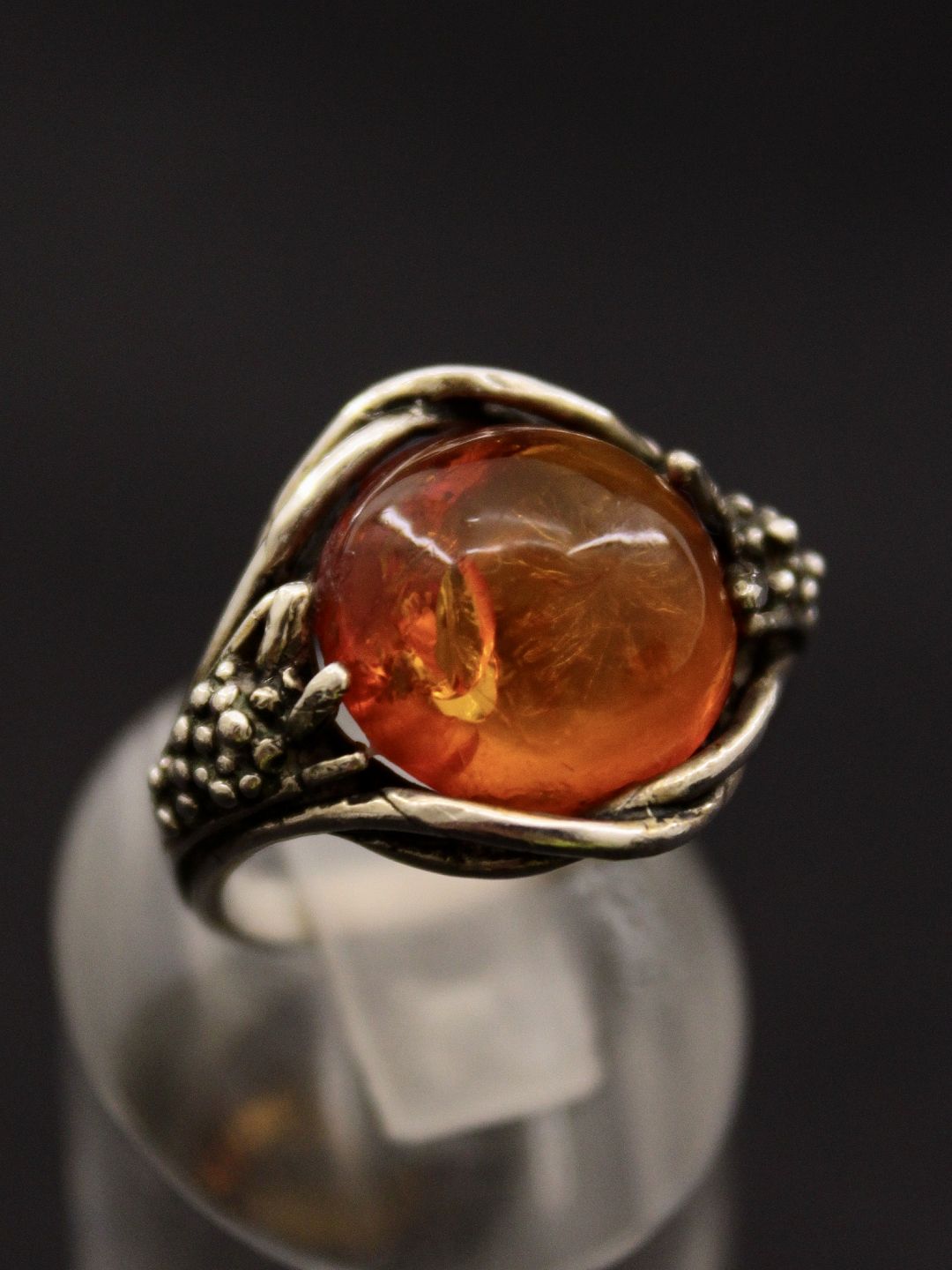 : Sterling sølv ring størrelse 57 med rav emne nr. 553790