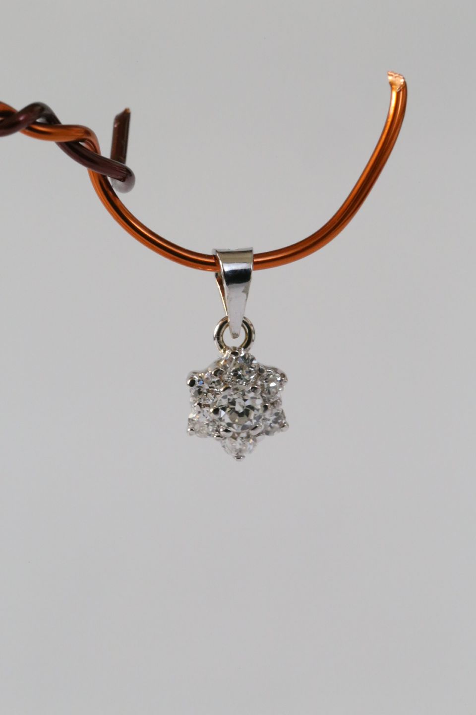 Star-shaped pendant in 14 carat white gold, with Diamonds. Stamped 585