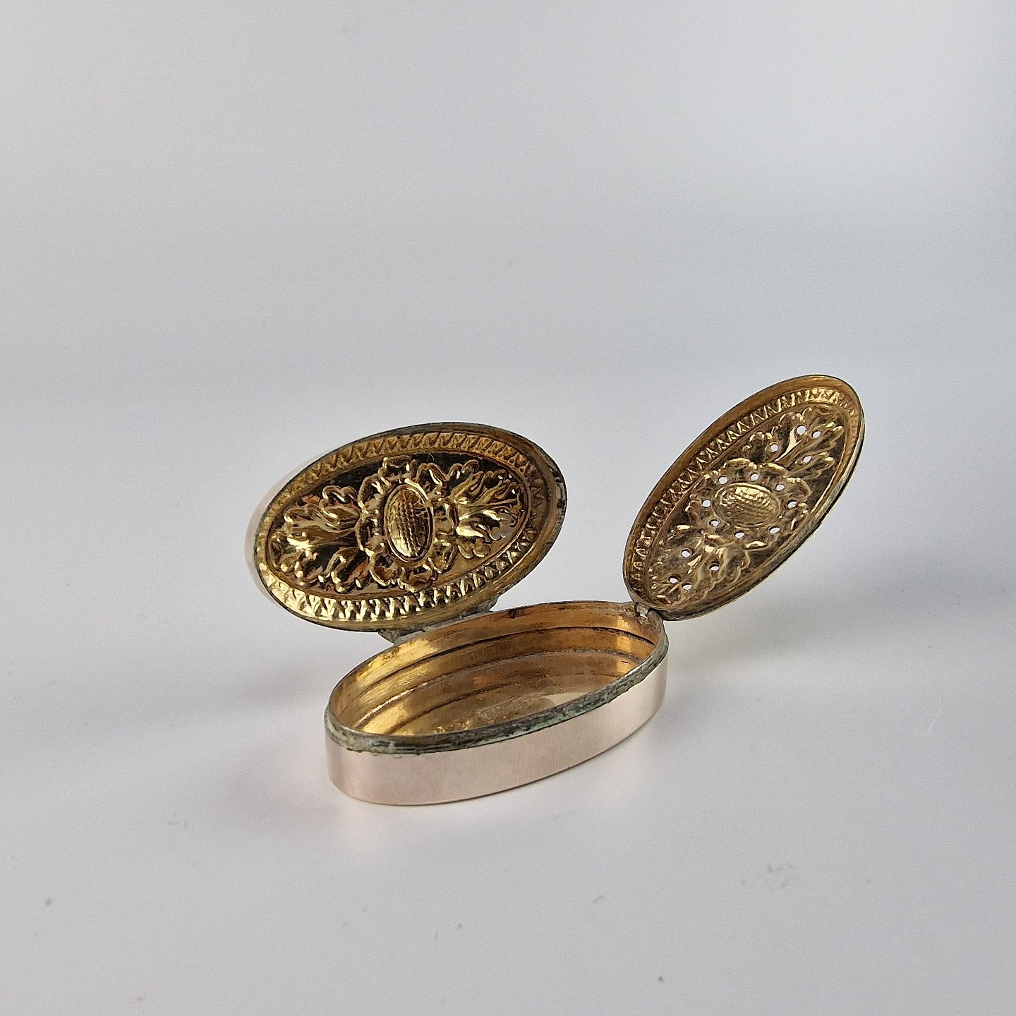 Beskrivelse: Sølvæske med 2 låg dekoreret med en blomst.
