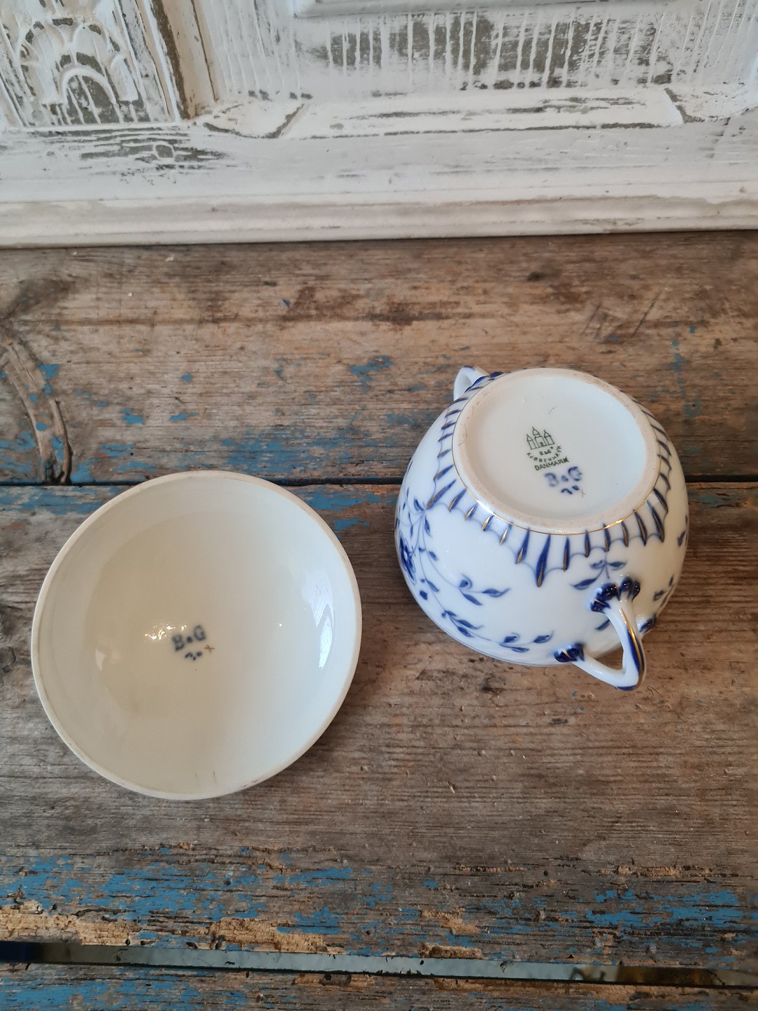 Beskrivelse: B&G Sommerfugl Kipling med guldkant sukkerskål