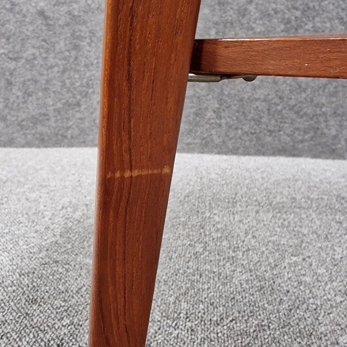 Beskrivelse: Rundt bord af teak, med 3 ben og trekantet hylde