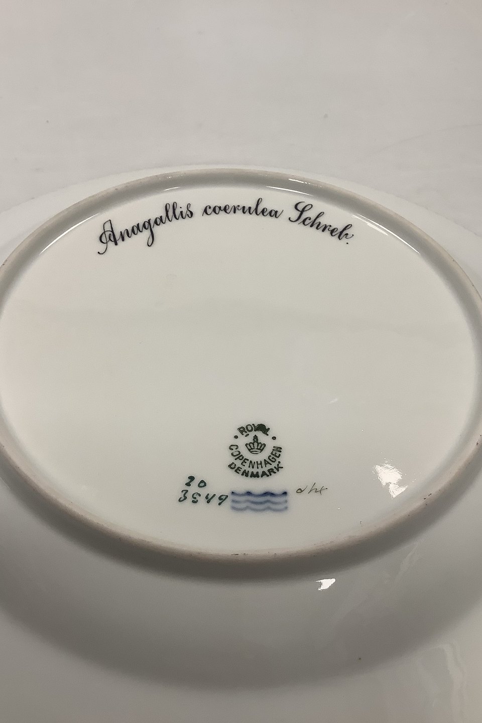 Beskrivelse: Royal Copenhagen Flora Danica Spisetallerken No. 624 (20/3549) Måler Diam 26 cm. (10.23 inch) 1. Sortering. Latinsk Navn: Anagallis coerulea Schreb