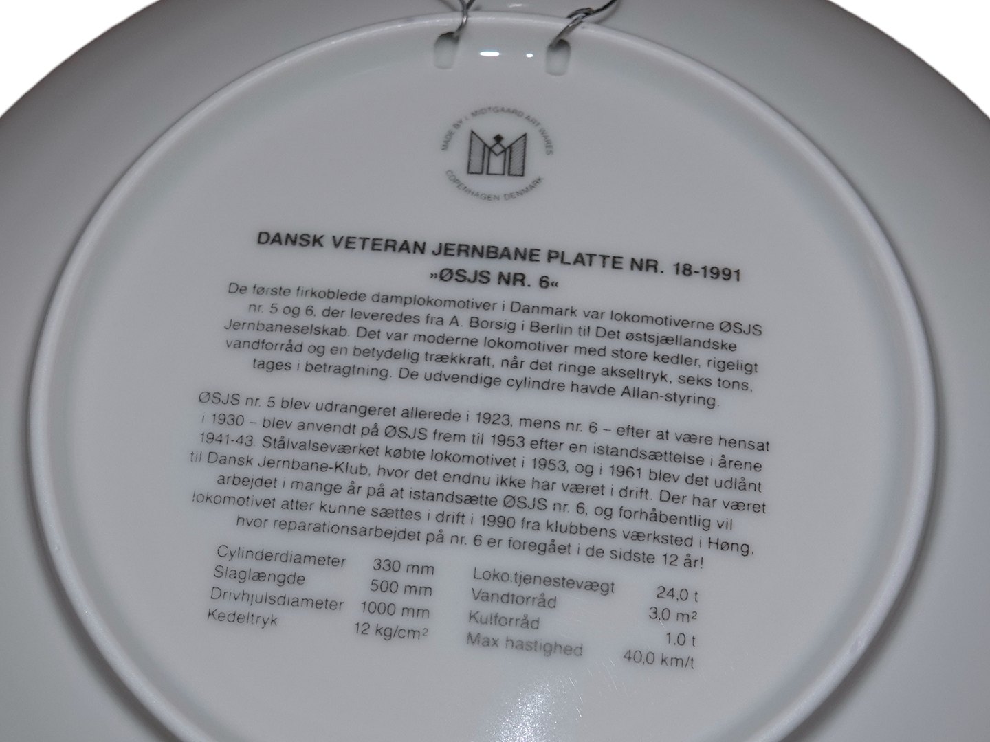 Beskrivelse: Midtgaard Art Wares togplatte, Dansk Veteranplatte No. 18 med DSB tog. Starten af serien blev lavet hos Bing & Grøndahl.