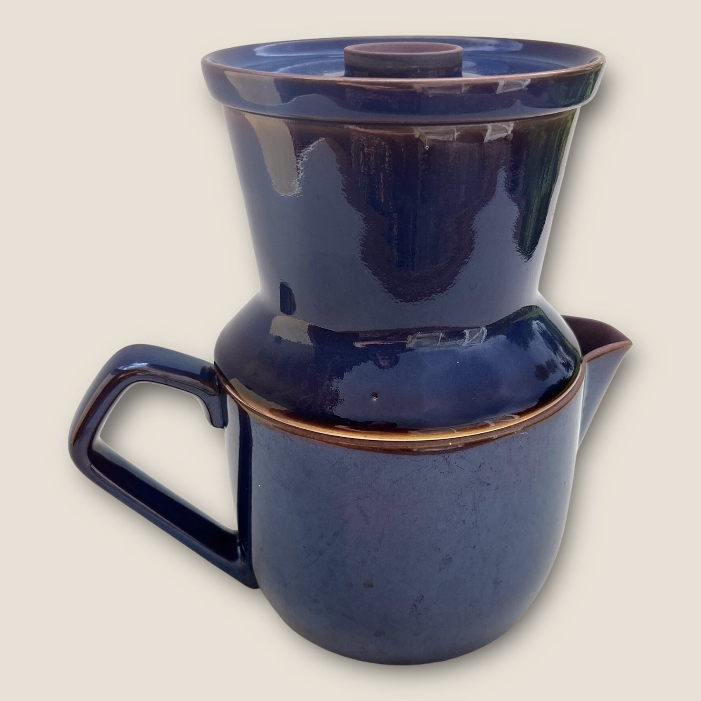 Description: Royal Copenhagen, Aluminia, Prunella, Jug with filter holder, 20.5cm high, 22cm wide Design Magnus Stephensen *Nice condition*