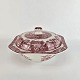 Rød Paris er af engelsk fajance dekoreret med forskellige landskaber og blomster i kanten, alt i forskellige røde nuancer
