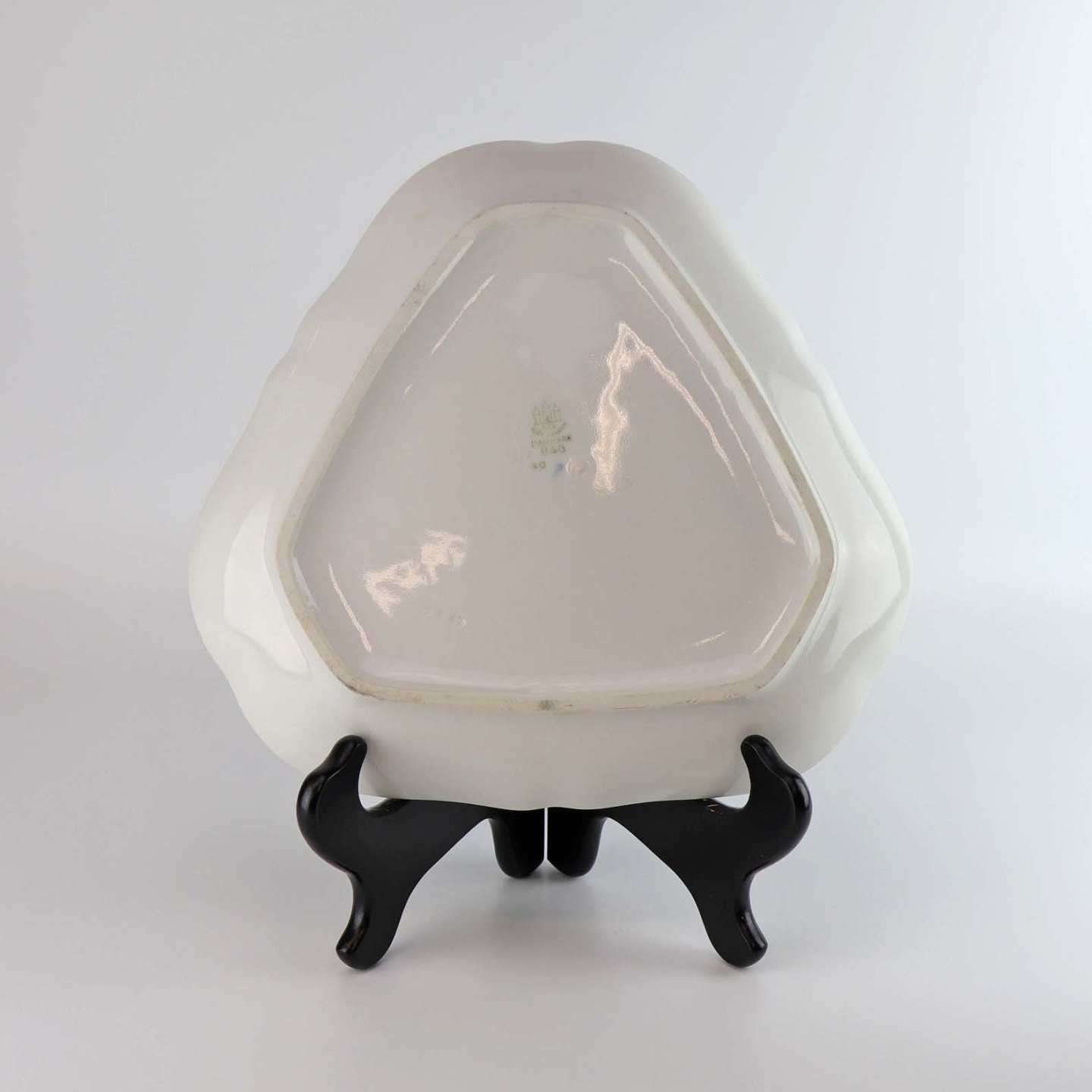 Beskrivelse: Trekantet fad fra stellet Julerose. Nr. 40