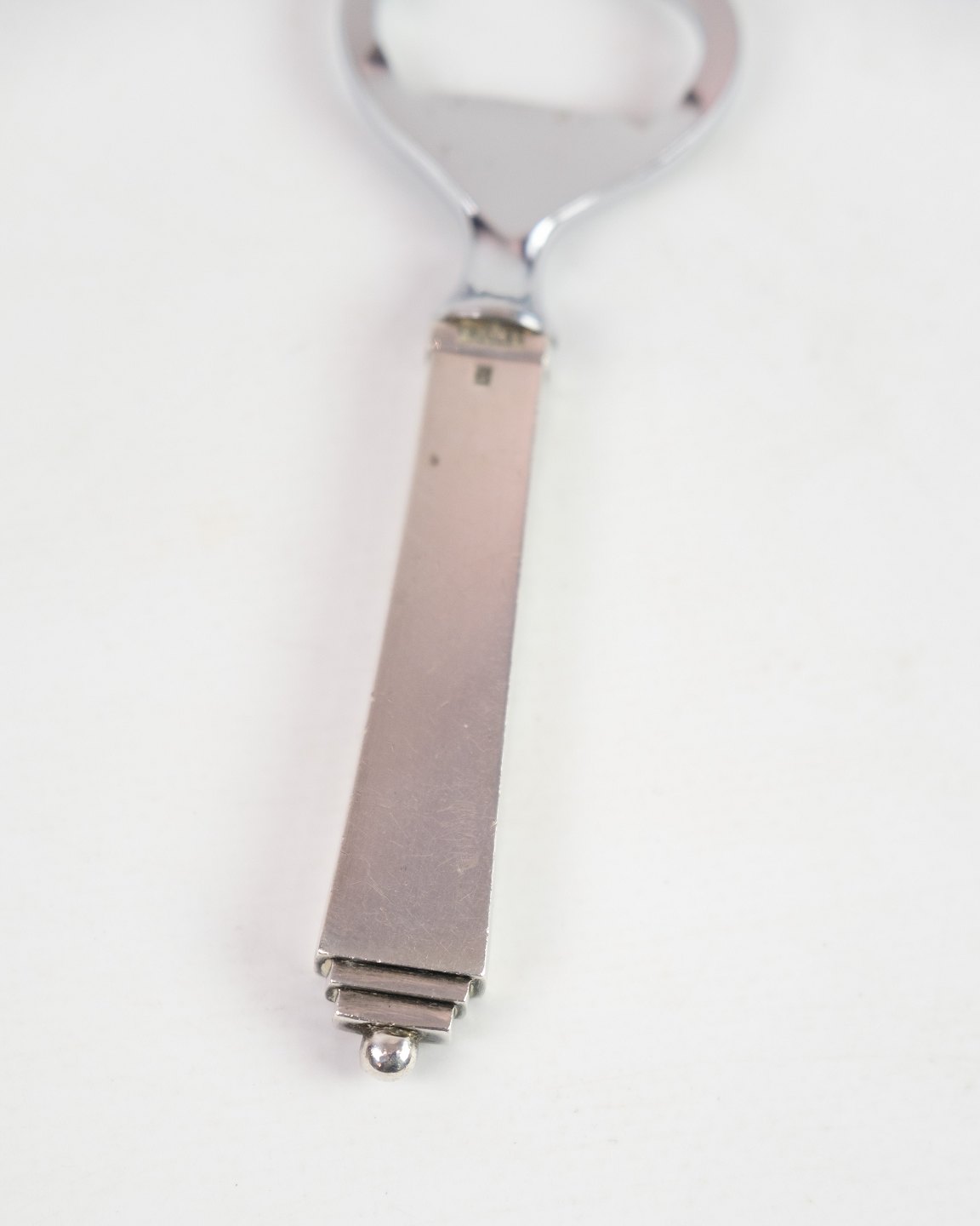 Beskrivelse: Øloplukker model 271 i sterling sølv og stål, skaftet er i sterling sølv og kombineret med en funktionel stålåbner. Øloplukkeren er en del af Pyramide serien og er designet af Harald Nielsen og fremstillet af Georg Jensen.