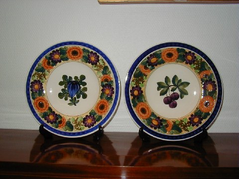 Description: Two Fantastic Aluminia Royal Copenhagen Faiance Plates. The one to the left has decoration number 1001/352 and the one to the right has number 999/352, diameter 25 cm. Perfect condition.