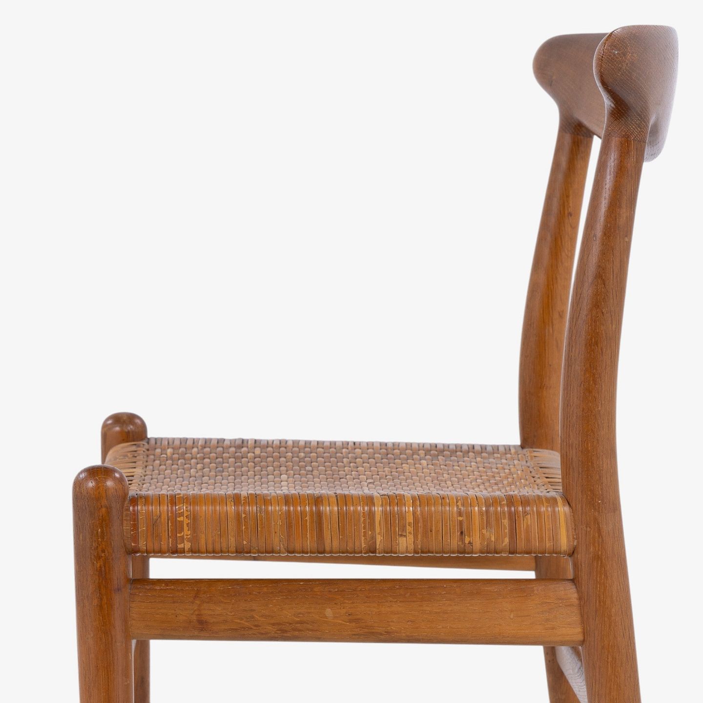 W2 - Dining chair in patinated oak with seat in wicker. Stamped from manufacturer.