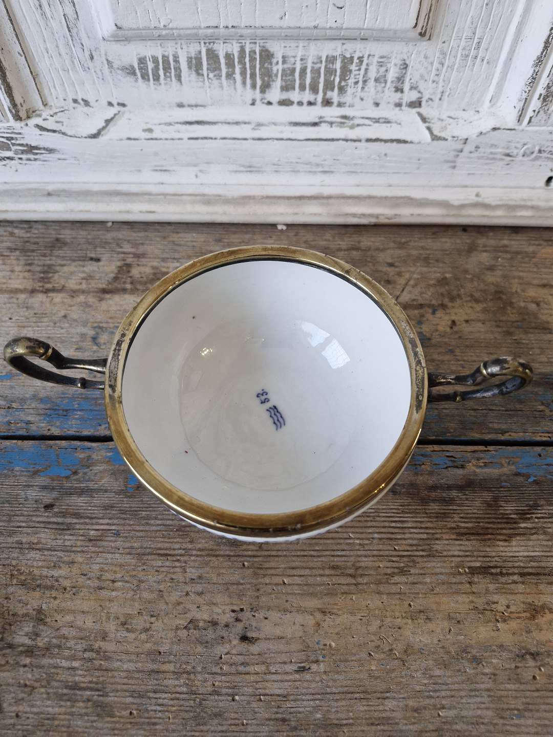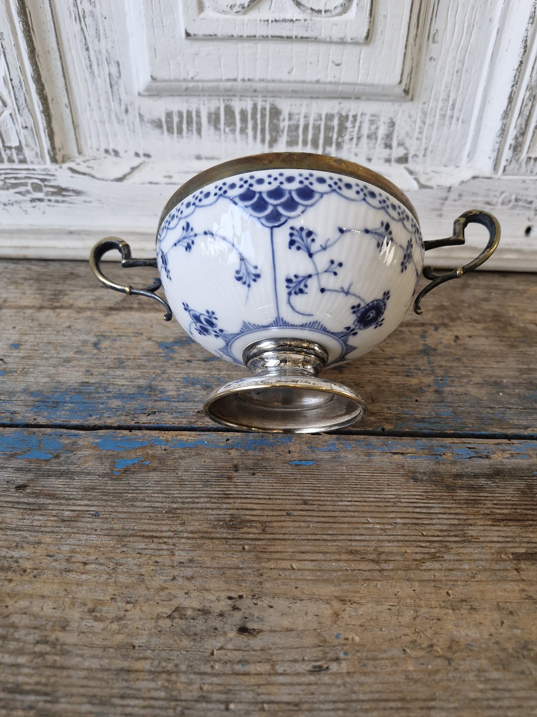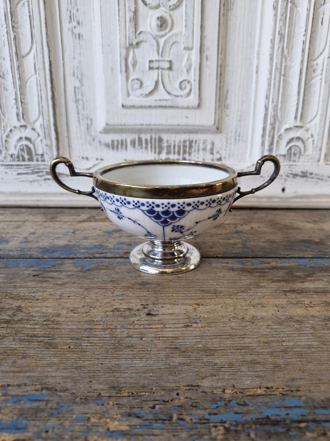 Royal Copenhagen Blue Fluted Half Lace Sugar Bowl with Silver Plated Mounting