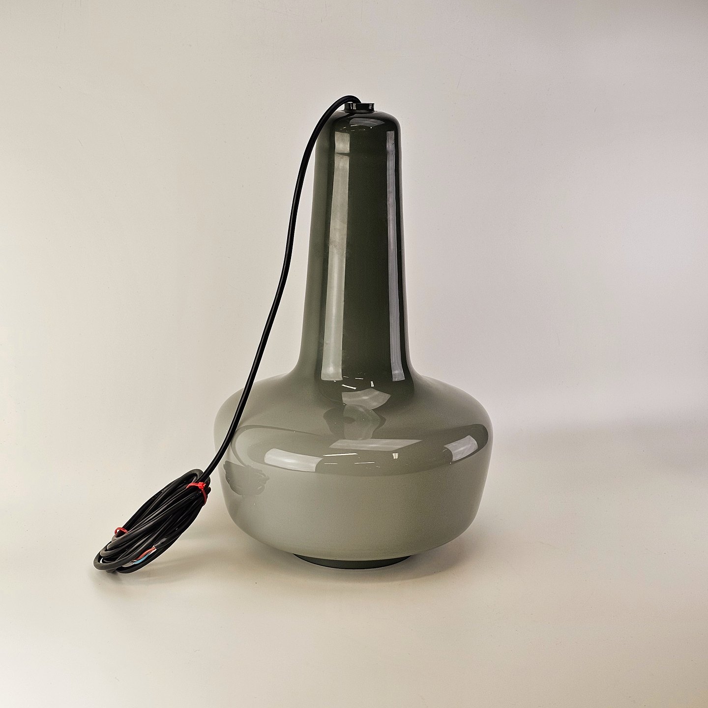 Beskrivelse: Pendel i opal glas, grågrøn by ydersiden og hvid på indersiden