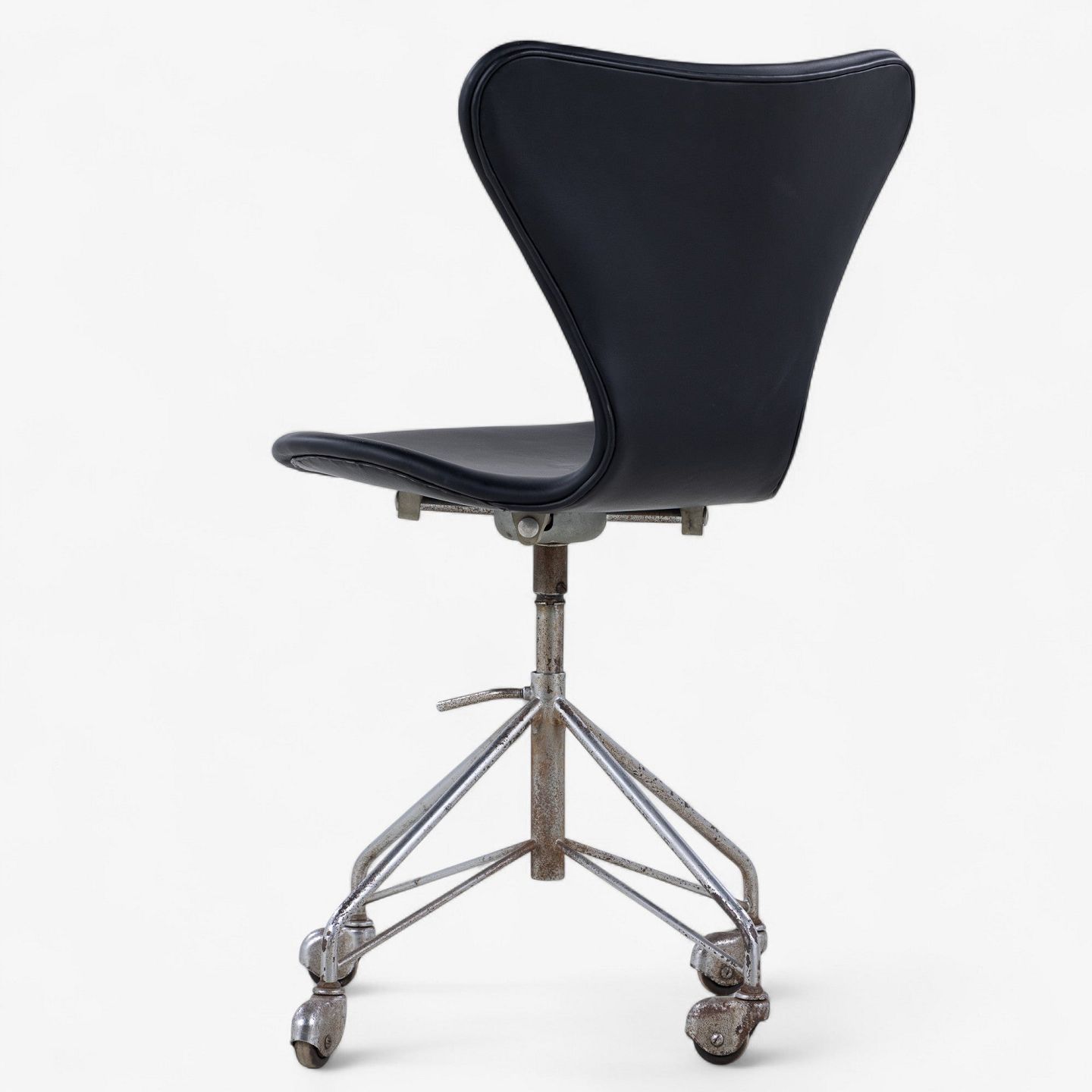 AJ 3117 - 'Syver'-kontorstol i sort læder på original patineret stel. Mærket fra producent.