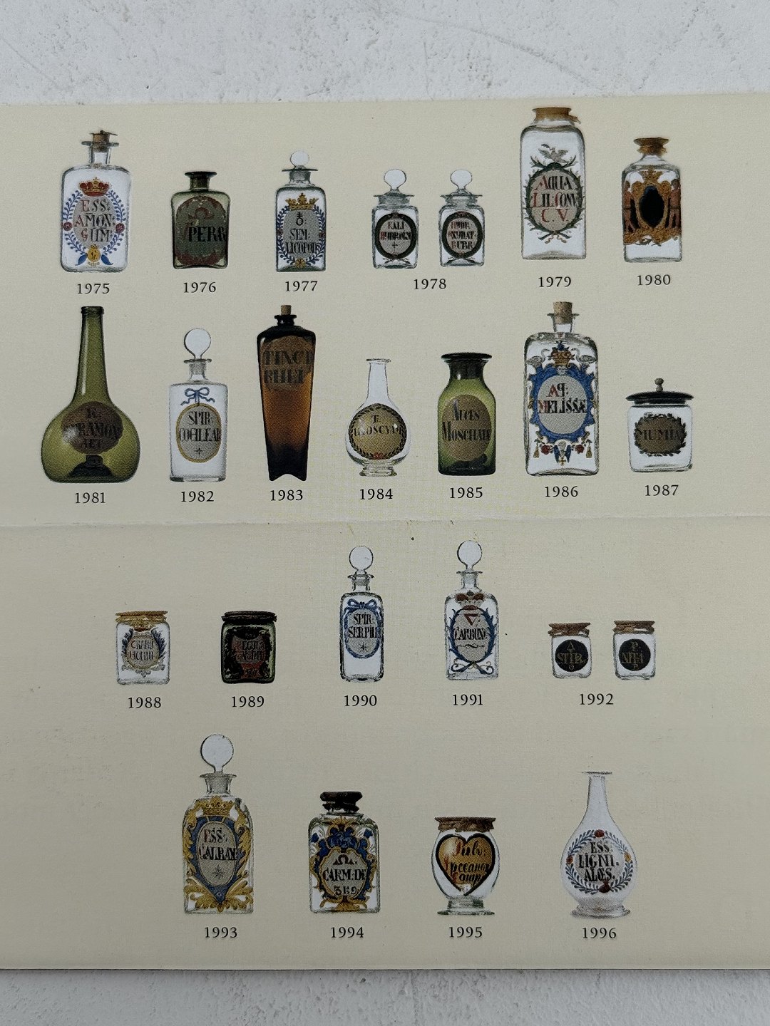 Beskrivelse: Holmegaard apotekerflaske fra 1995, Pulv. speeauan comp, Mål: 9x6cm, flaskerne er mundblæste kopier af originale gamle apotekerflasker, Signeret Hg95.