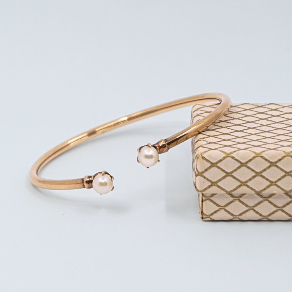 Description: Bernhard Hertz; A bangle of 8k gold, set with two pearls.