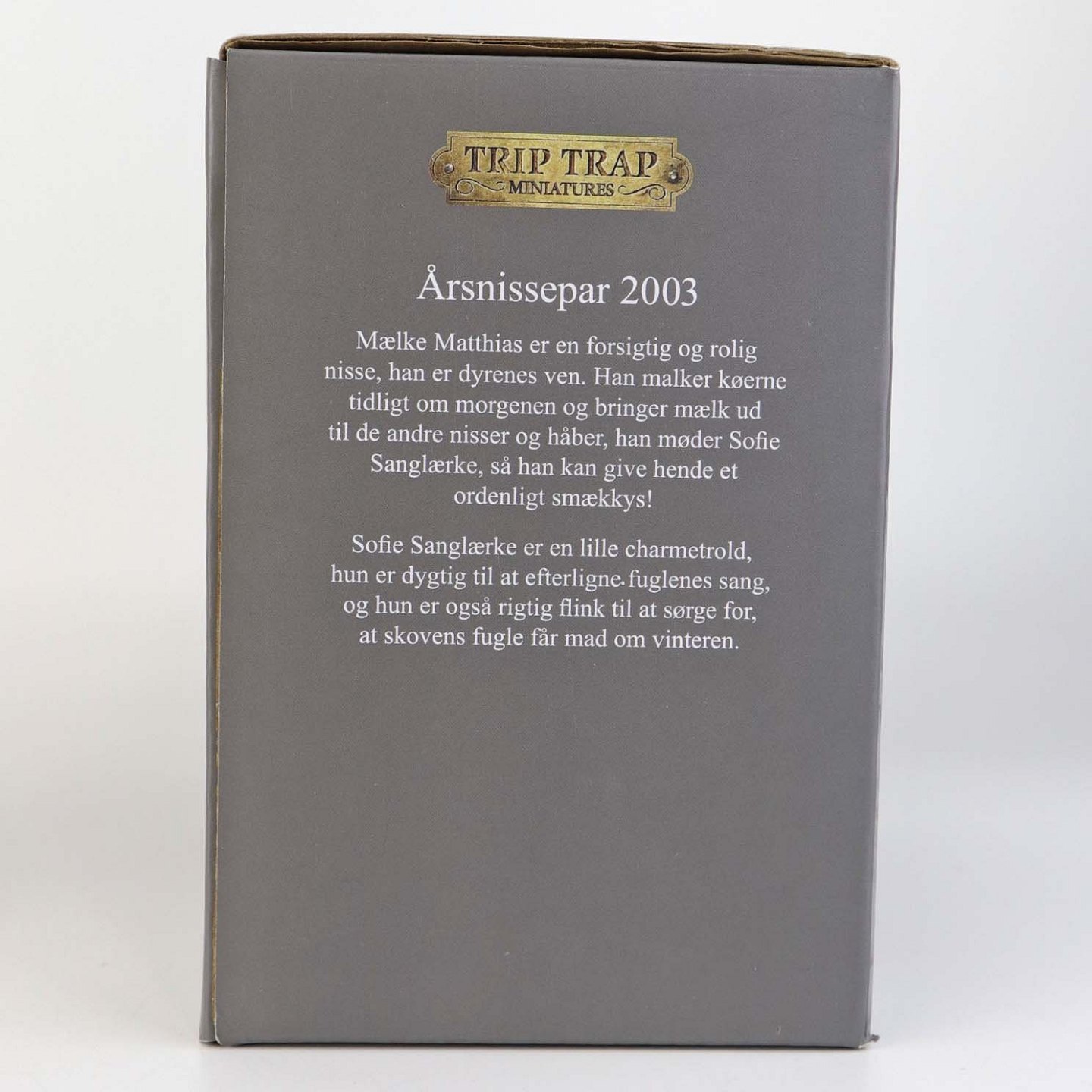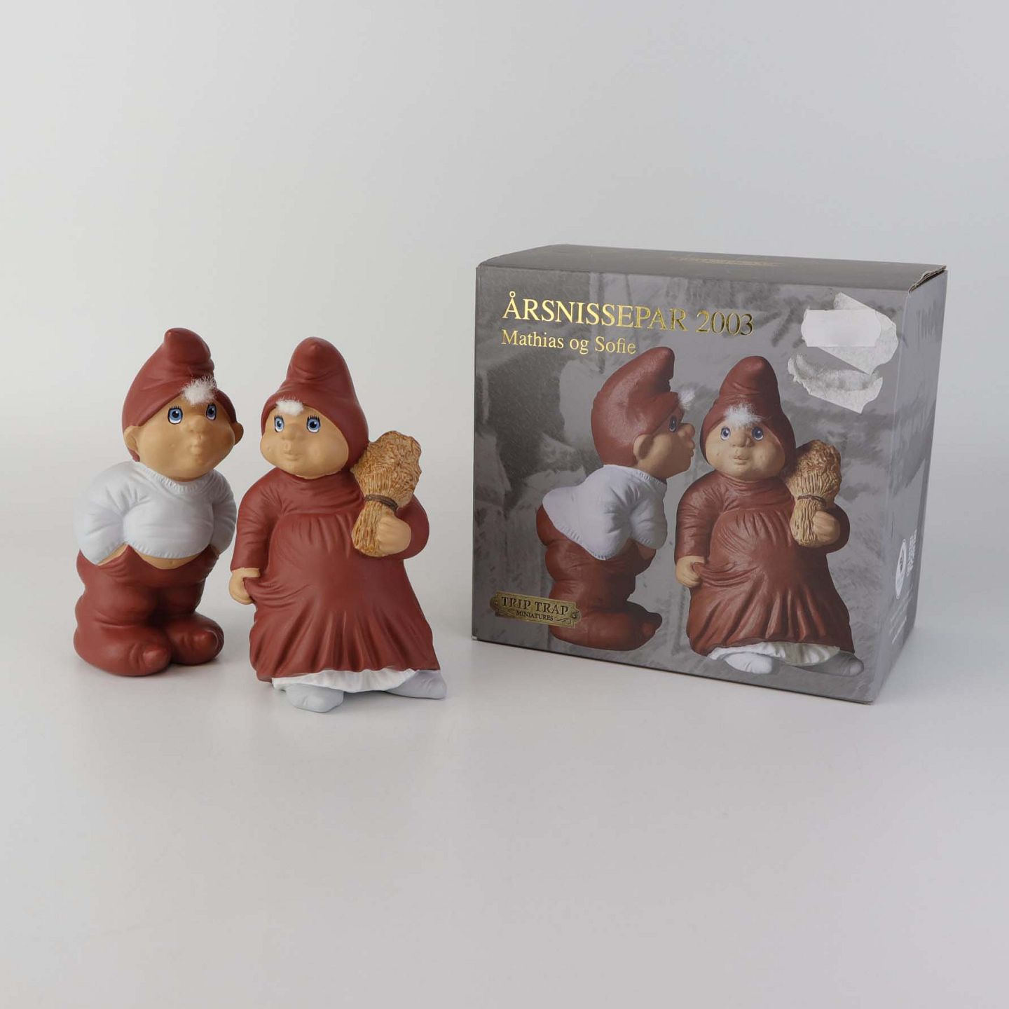 Beskrivelse: Figursæt med motiv Mathias og Sofie, som er årsnissepar fra år 2003 fra serien Klarborg jul. Figurene kommer med original boks.