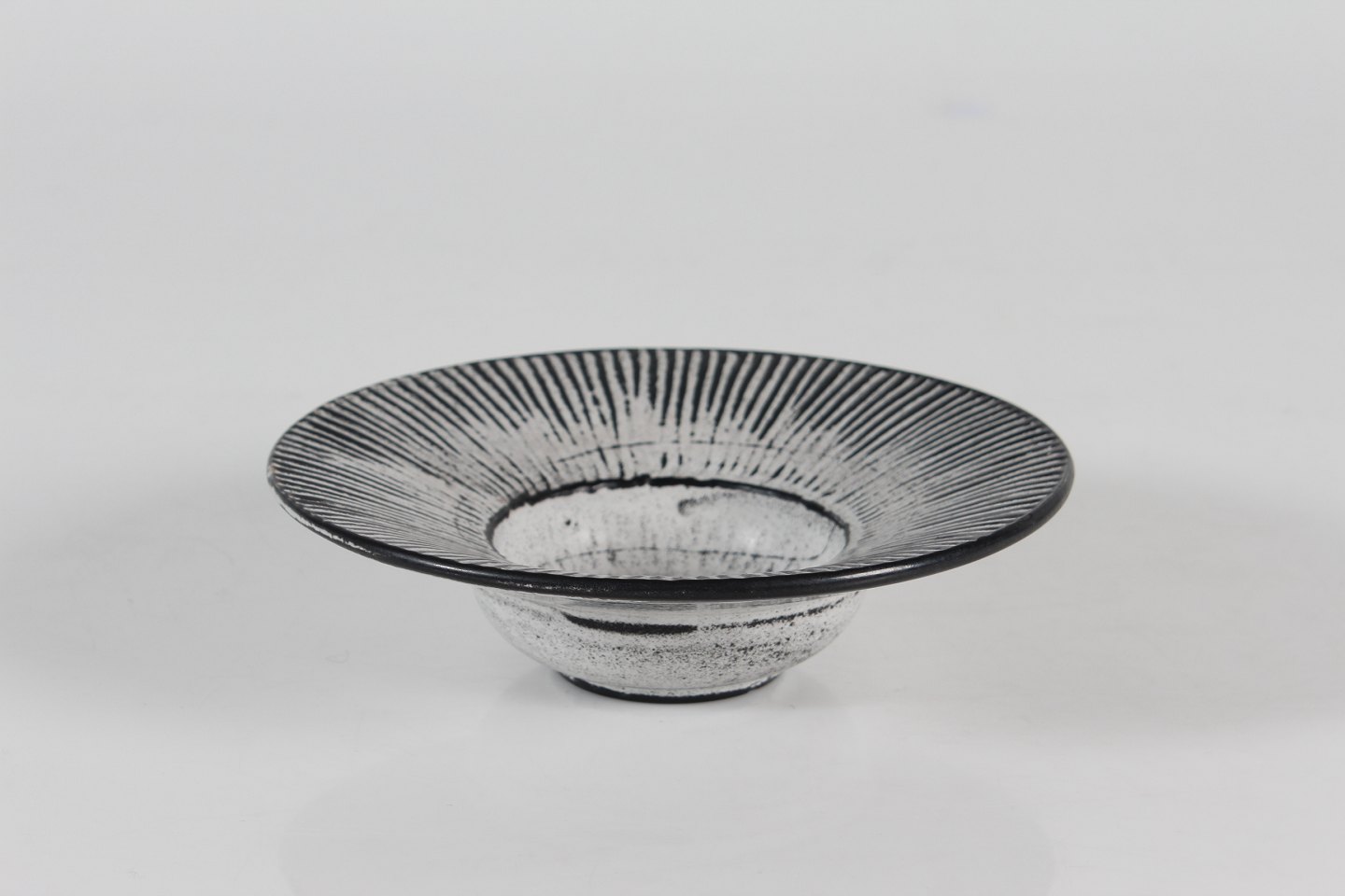 Rund præstekrave skål med askegrå/sort glasur