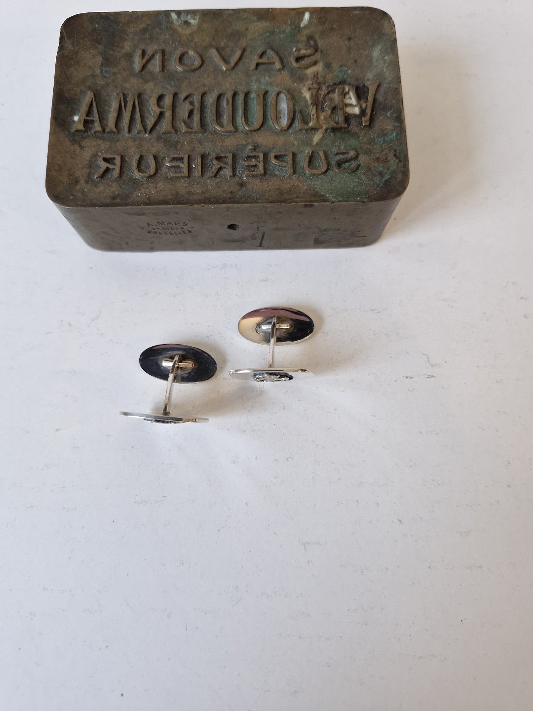 Manchetknapper i sterlingsølv med Ingeniørregimentets logo udført af Hermann Siersbøl