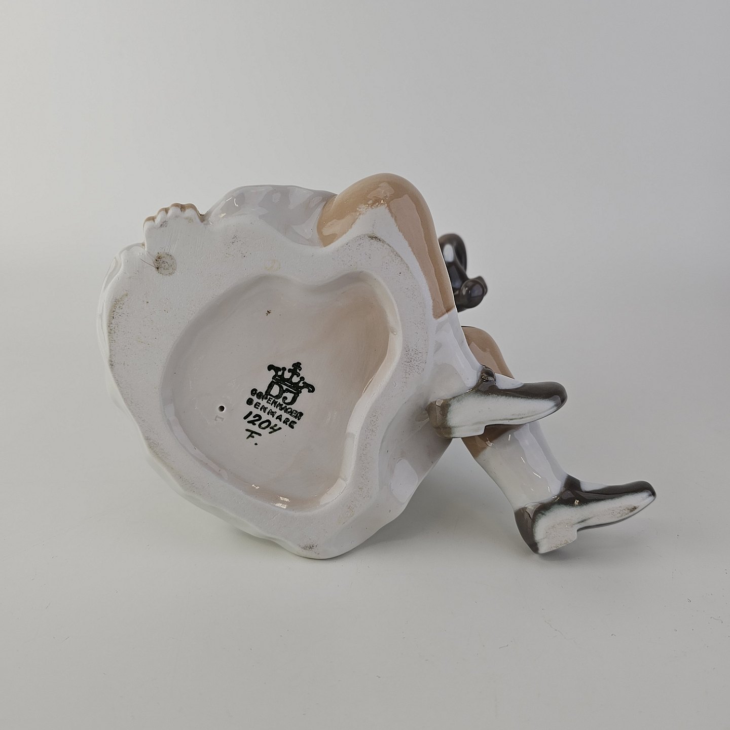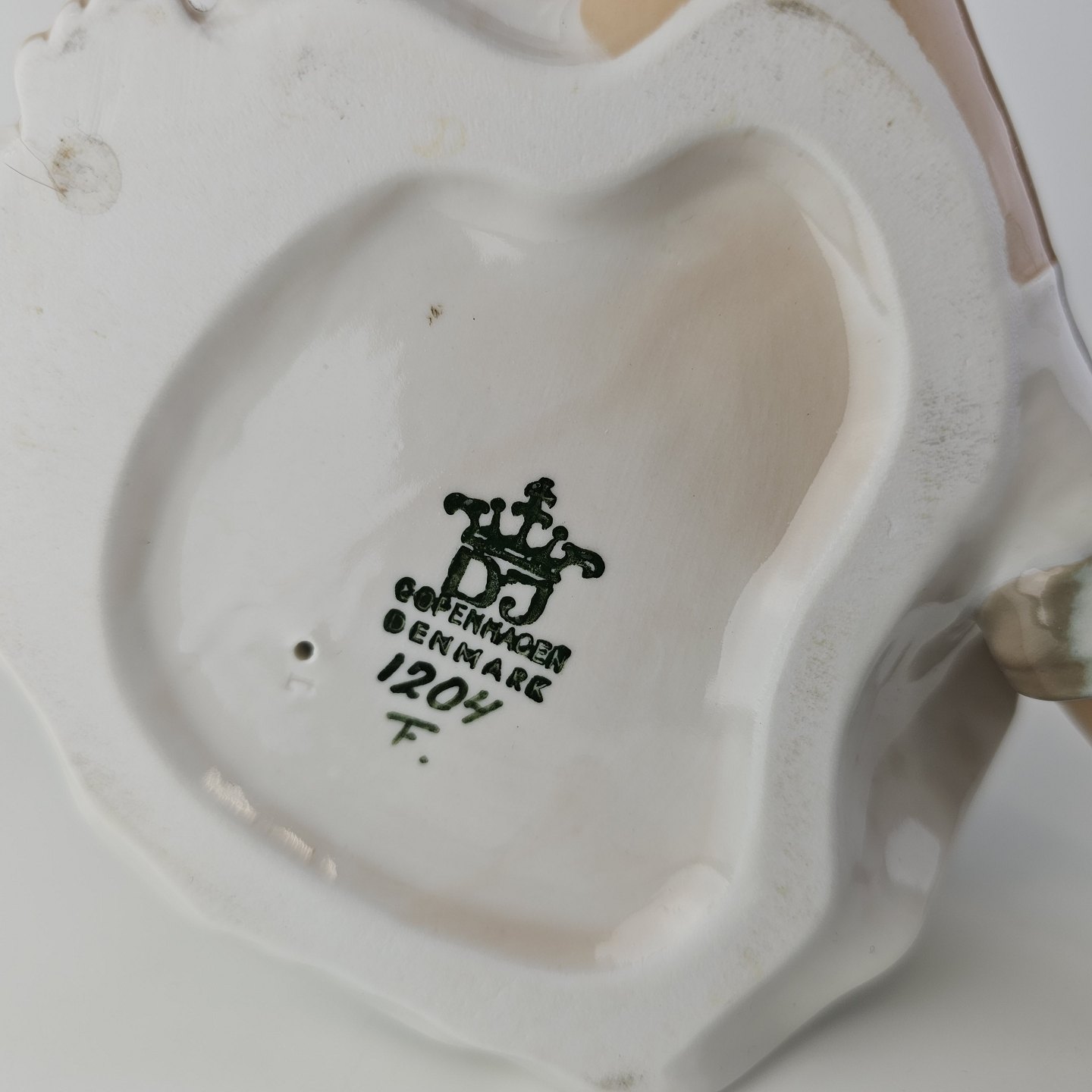 Beskrivelse: Figur i porcelæn med motiv af en pige med en legetøjselefant