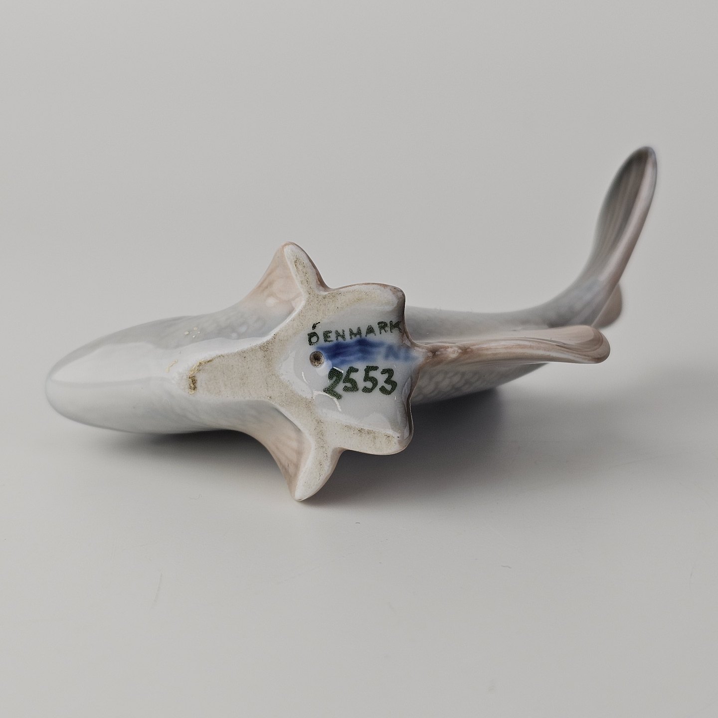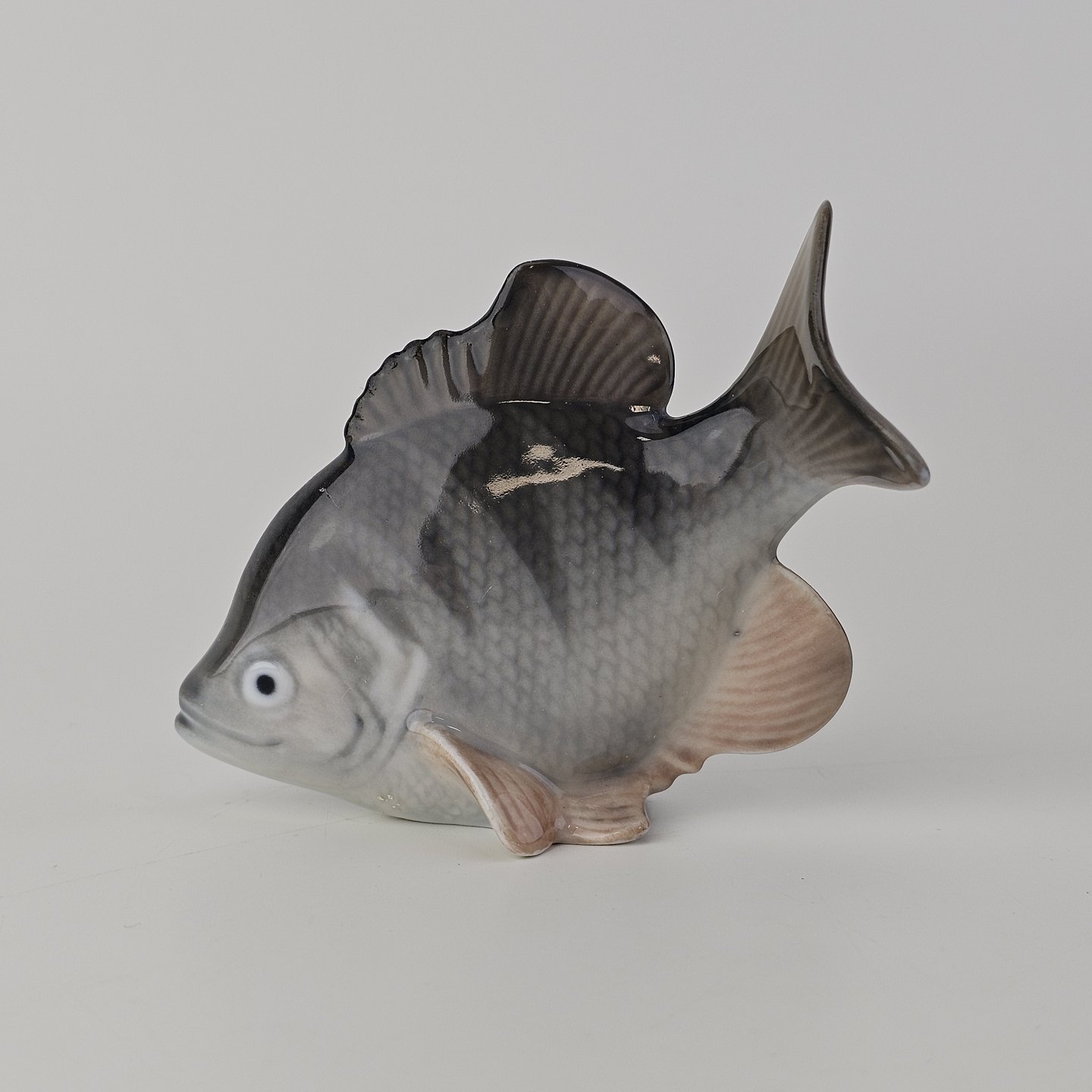Beskrivelse: Figur i kongeligt porcelæn med motiv af en amerikansk aborre