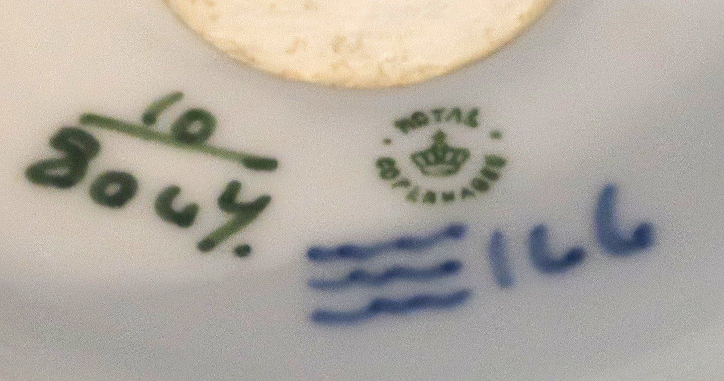 Description: Royal Copenhagen. Blue flower. Cakebowl on foot. Model 8064. Height 15 cm. Diameter 21 cm. (1 quality)